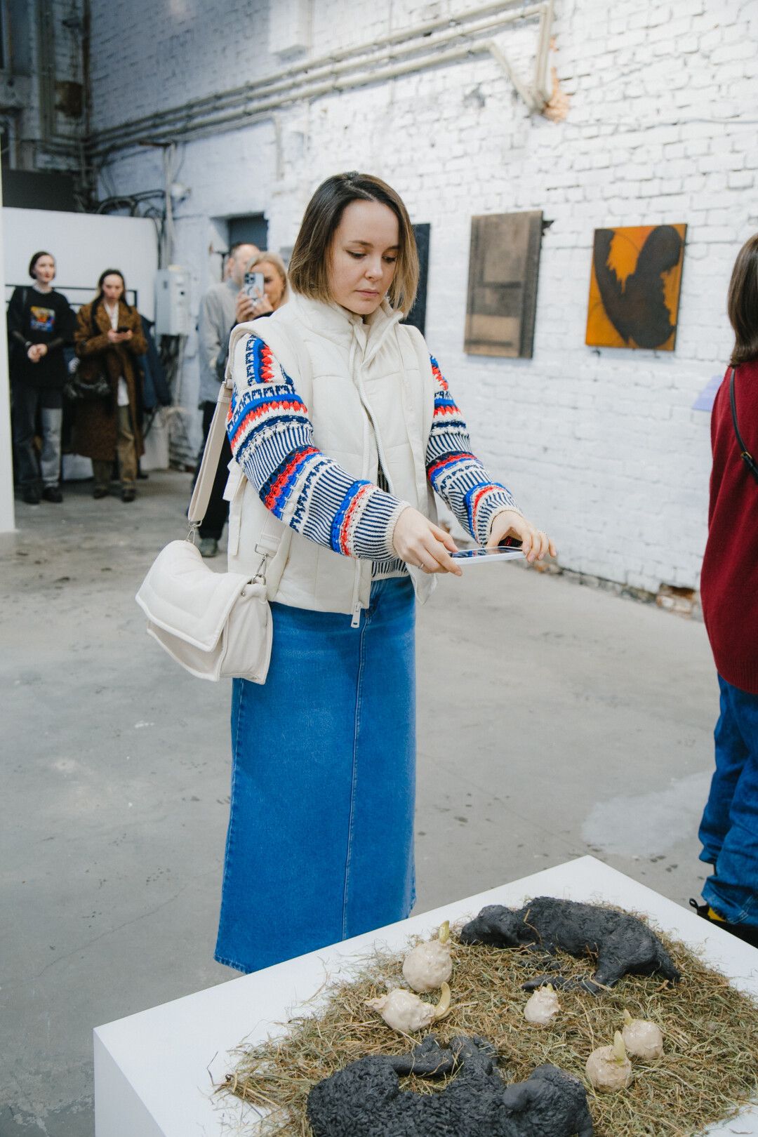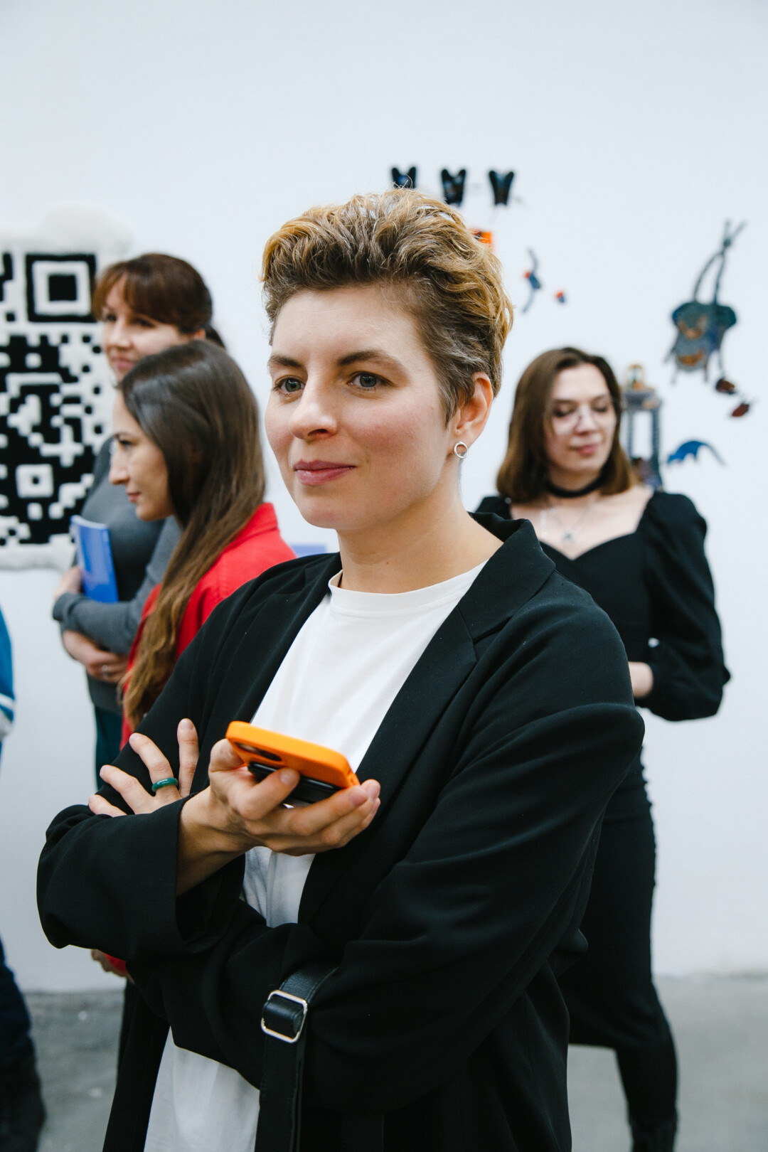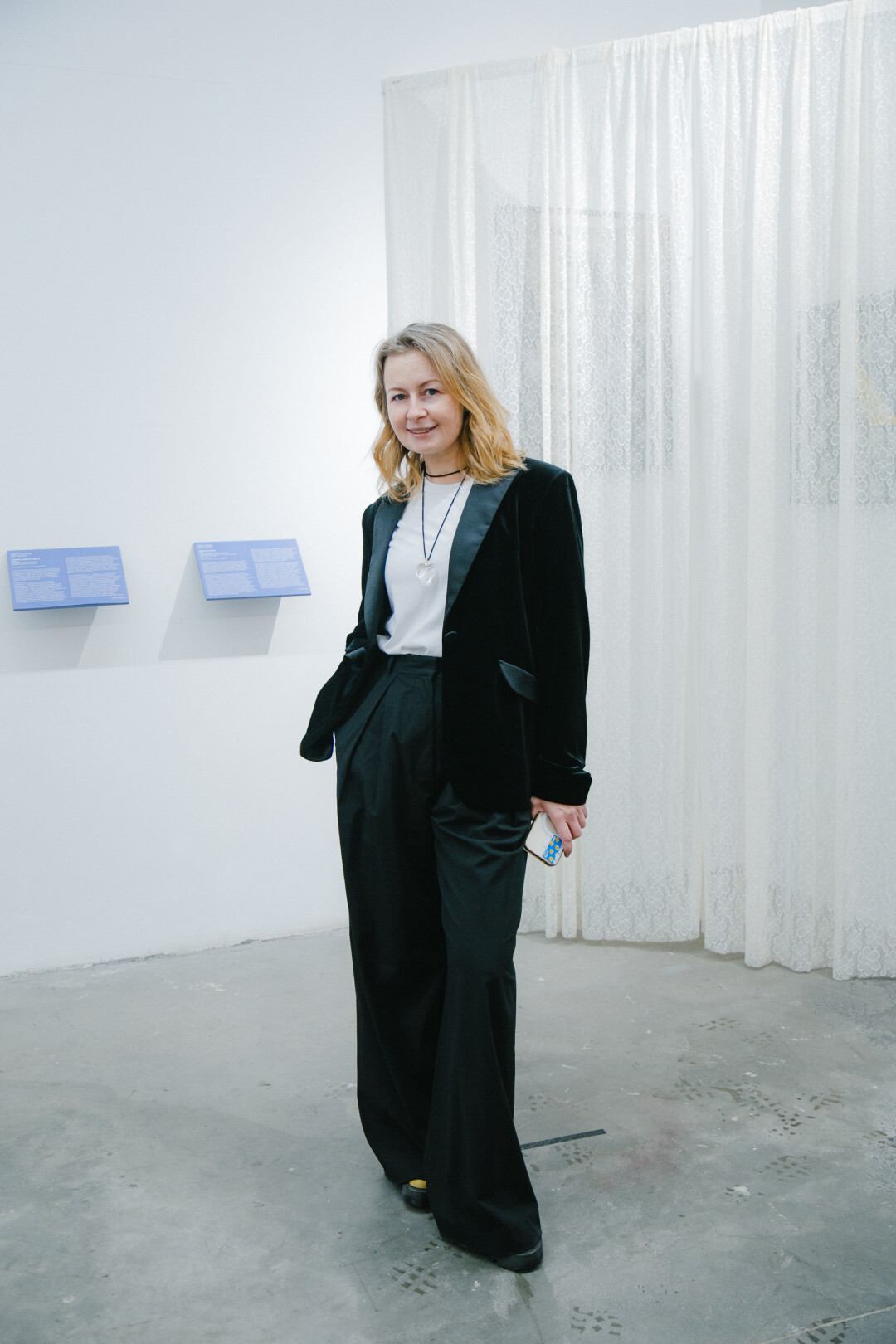 Елена Тальянская, галеристка, сооснователь «Галереи 9Б»: «Впечатления от выставки самые хорошие. Народу много, много знакомых, которые постоянно к нам приходят, много молодых людей, которых вижу впервые, они фотографируют, обсуждают, проявляют интерес. Каждый здесь находит что-то свое. Мне, например, нравится настроение, которое передают картины. Нравится их детальность — можно долго рассматривать и каждый раз открывать что-то новое».