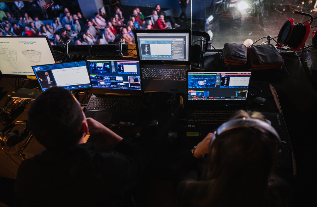 Чтобы организовать среднего размера стрим, нужно оборудования на три-четыре миллиона рублей. Это профессиональная проверенная техника: пультовая, несколько камер, несколько мощных компьютеров, которые выполняют функцию медиасерверов, специализированные устройства для видео-, аудиозахвата, контроллеры, коммутация – все вместе это называется ПТС, передвижная телестудия, или трансляционная станция. Примерно за три часа мы можем развернуть такой комплекс на площадке события. На случай, если что-то пойдет не так, есть несколько систем дублирования оборудования.