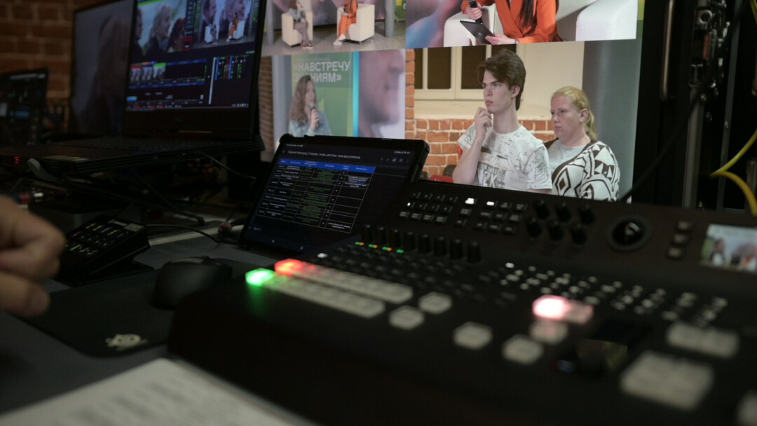 На уровень выше – трансляция из какого-то большого пространства, для подобных мероприятий во многих случаях требуется реализация двустороннего вещания, ну, то есть телемоста. Эфир ведется с нескольких камер, нужно несколько планов выступающих, возможно, съемка зрителей в студии.
