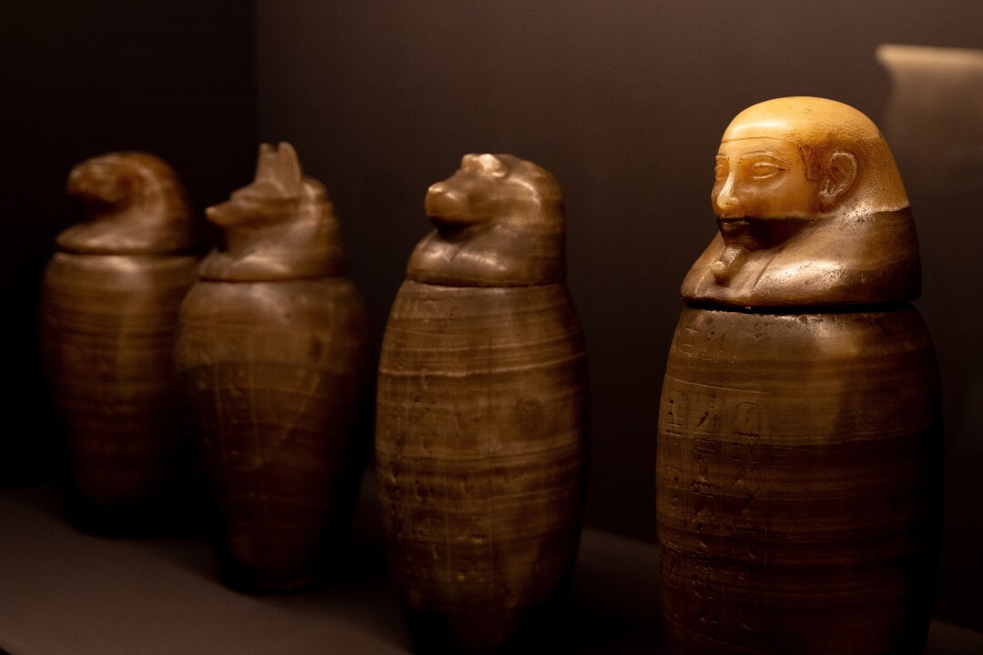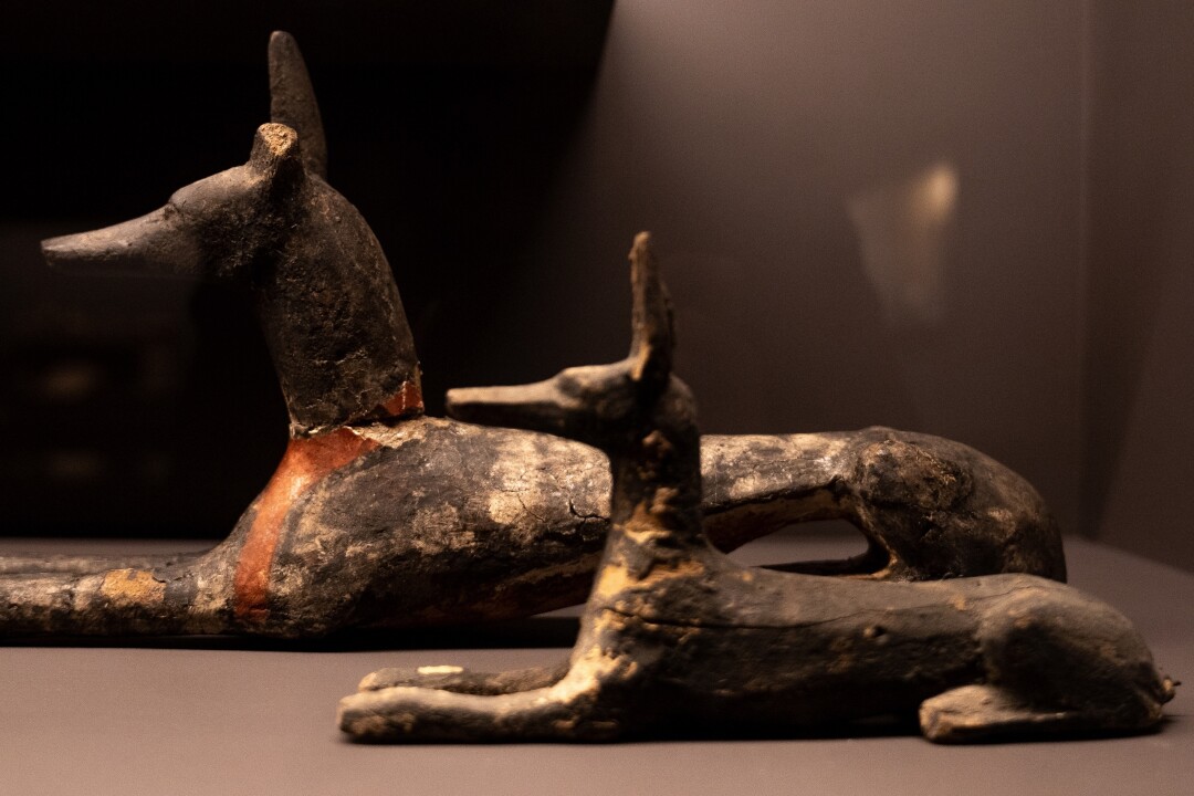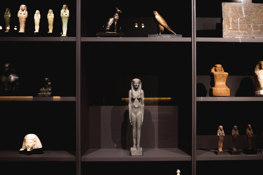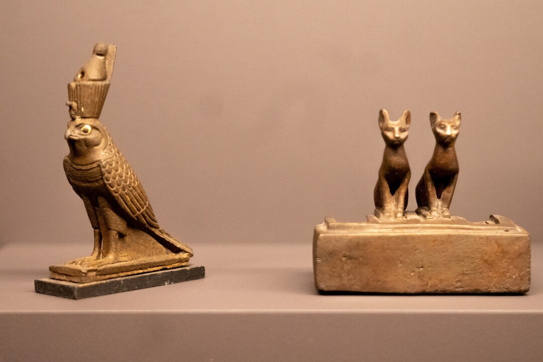 Cреди главных экспонатов также детали гробницы с магическими рисунками и статуэтки трех божеств: покровительницы влюбленных Хатхоры, богини-кошки, защитницы от злых духов Бастет и хранителя дома Бэс.