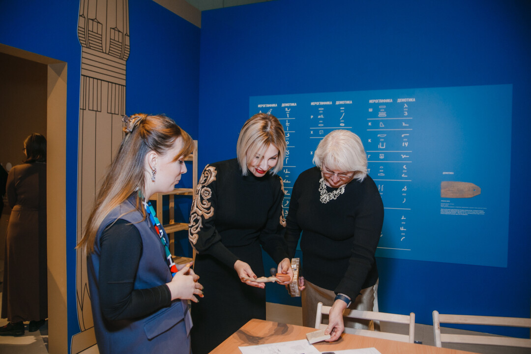 Татьяна Потапова, заместитель директора ГМИИ им. Пушкина: «Выставка ценна тем, что она показывает результаты исследований и сотрудничества Пушкинского музея и Курчатовского института. Сегодня вы увидите современные методы изучения мумий, компьютерные томографии, фигуры египтян и древние тексты».