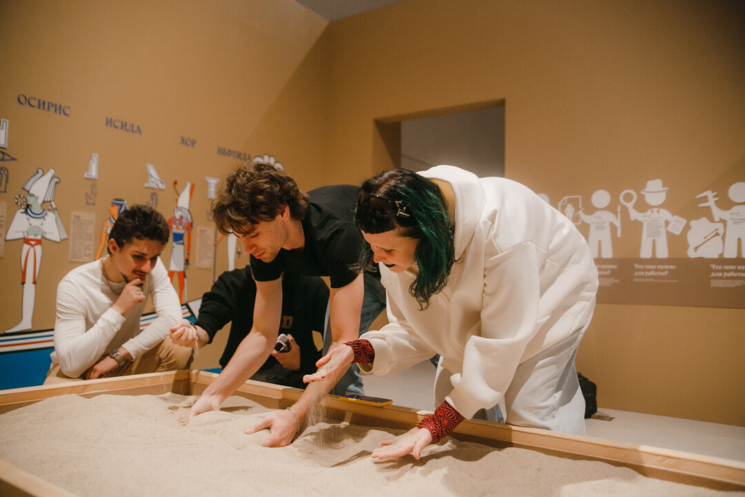 В интерактивной зоне проекта ученые-египтологи проводят групповые занятия с детьми и лекции для взрослых. Дети, например, смогут провести собственные раскопки в импровизированной песочнице — отыскать реплики древнеегипетских артефактов, а после, как того требуют правила, занести находки в археологический журнал.
