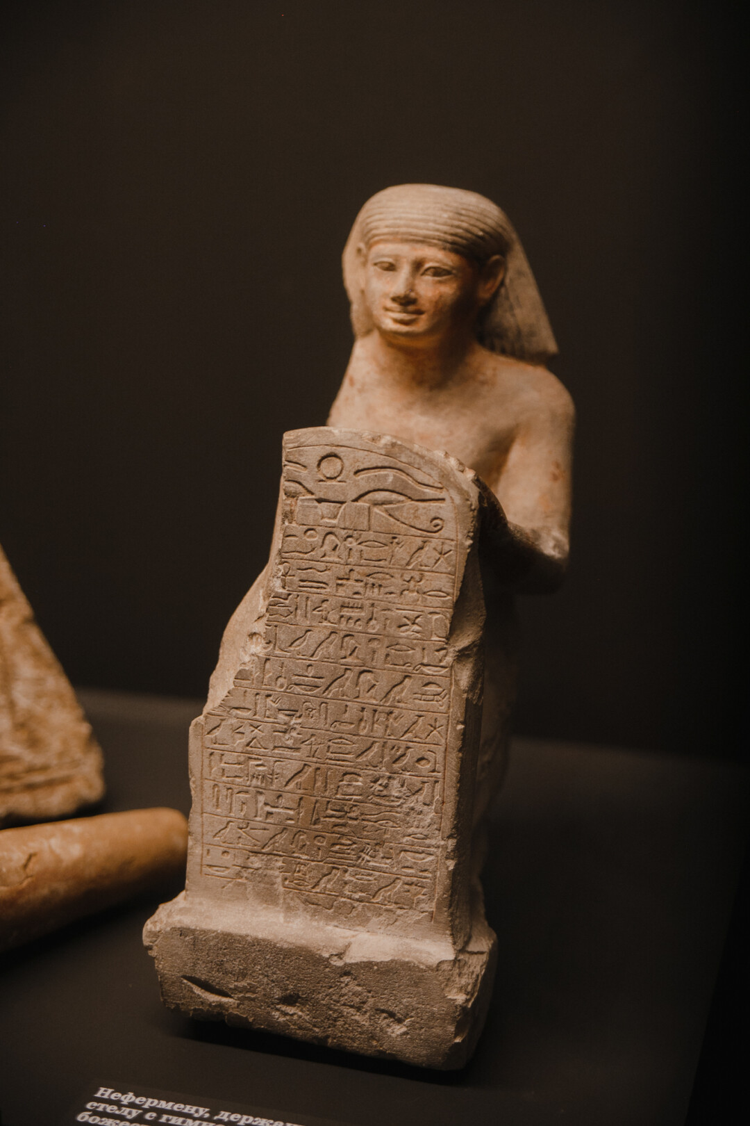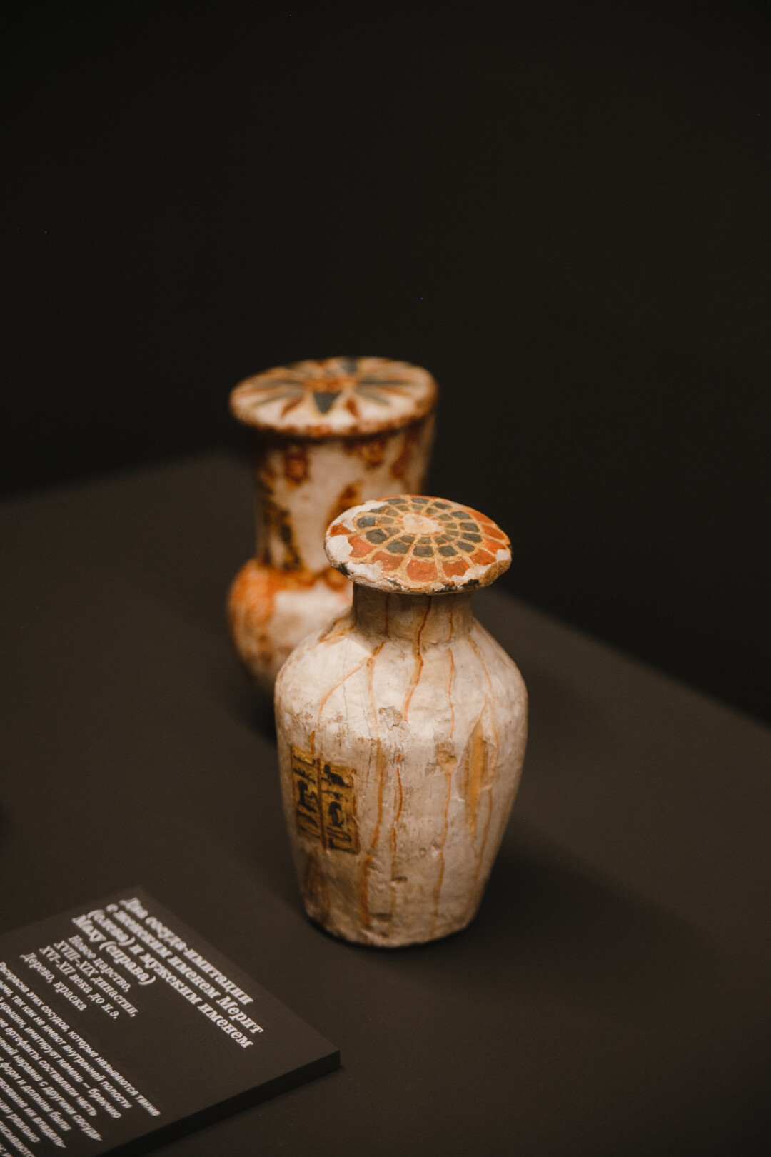 Большинство предметов выставки — из коллекции известного русского египтолога Владимира Голенищева. Всего 87 артефактов: статуэтки, таблички с надписями, саркофаги, фрагменты гробниц, украшения и предметы быта. Древнейшим из них более трех тысяч лет.