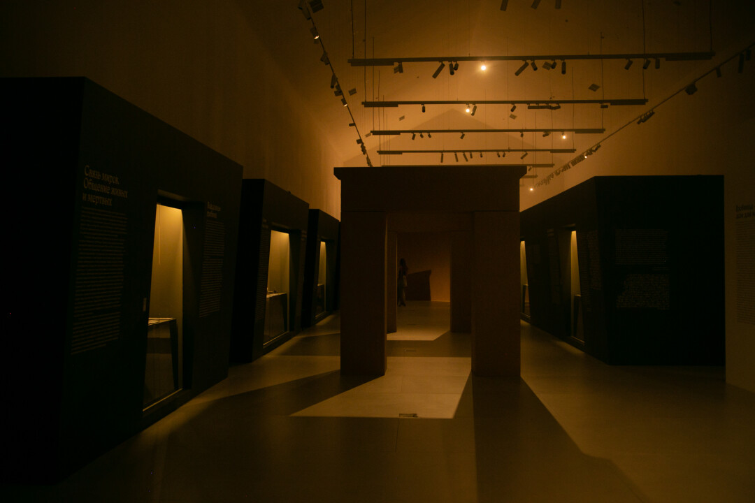 Каждый раздел проекта особым образом вписан в интерьер выставочного Пакгауза — с помощью порталов, отсылающих к архитектуре Древнего Египта. Автор этого обрамления нижегородский дизайнер Миша Маслов из MISH Studio (лауреаты премии «Нижний будущего» «НН.Собака.ru»).
