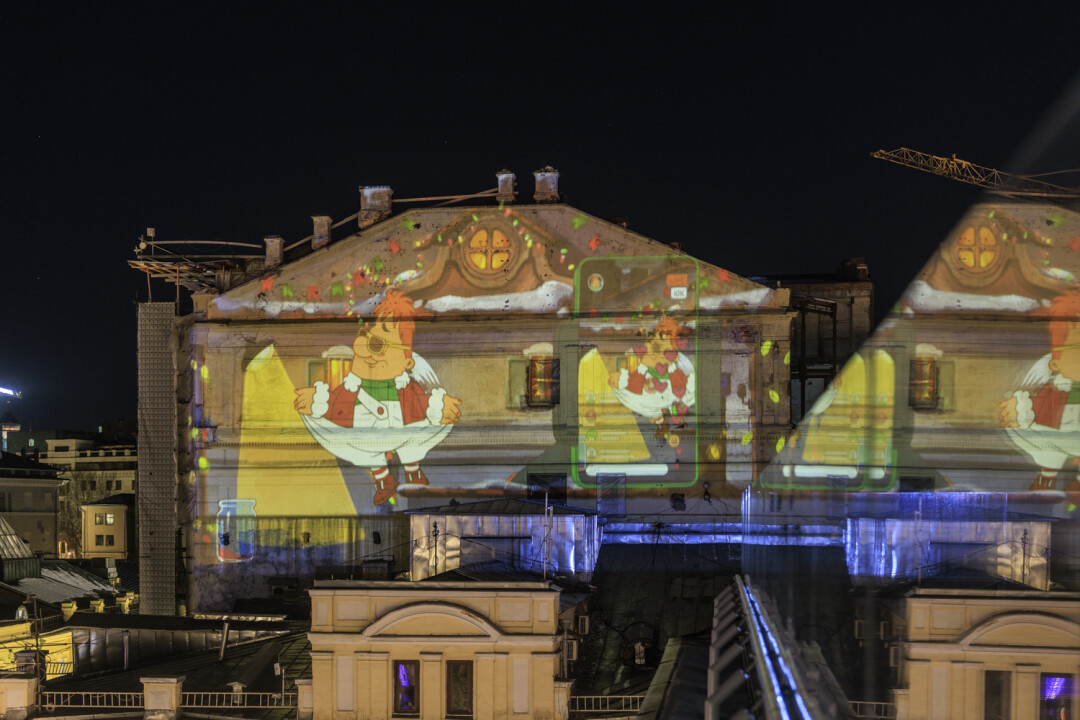 Команда dreamlaser создала пять мультимедийных инсталляций по сюжетам известных сказок для фестиваля «Город света». Например, Снежная королева, Хозяйка медной горы и другие волшебники обосновались на Новом Арбате. За космическим путешествием с Дедом Морозом можно понаблюдать на куполе Планетария. Снегурочку-фигуристку показывают около Доходного дома Третьяковых, а конвейер по упаковке подарков расположился на доме в Столешниковом переулке. Там же смотрим на полет Жар-птицы и Водяного, увлеченного рыбной ловлей.