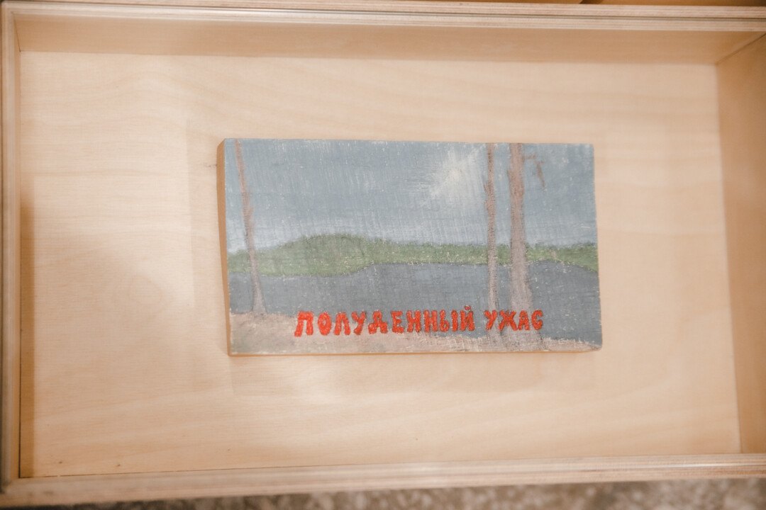 Мы около года обсуждали с культурным центром «Волна» создание совместного проекта. Нам хотелось привезти в Выксу всех художников нашей студии, чтобы рассказать о ней как о цельном сообществе. Выставка в календаре «Волны» оказалась запланирована на начало 2025 года – а это юбилейный год для «Тихой»! Получился отличный повод поговорить не об отдельных авторах, а про всю мастерскую. Так родилась незамысловатая концепция выставки – показать обыденную жизнь каждого художника и самой студии, наше состояние свободы, например, наш график или чувство обычного сомнения.