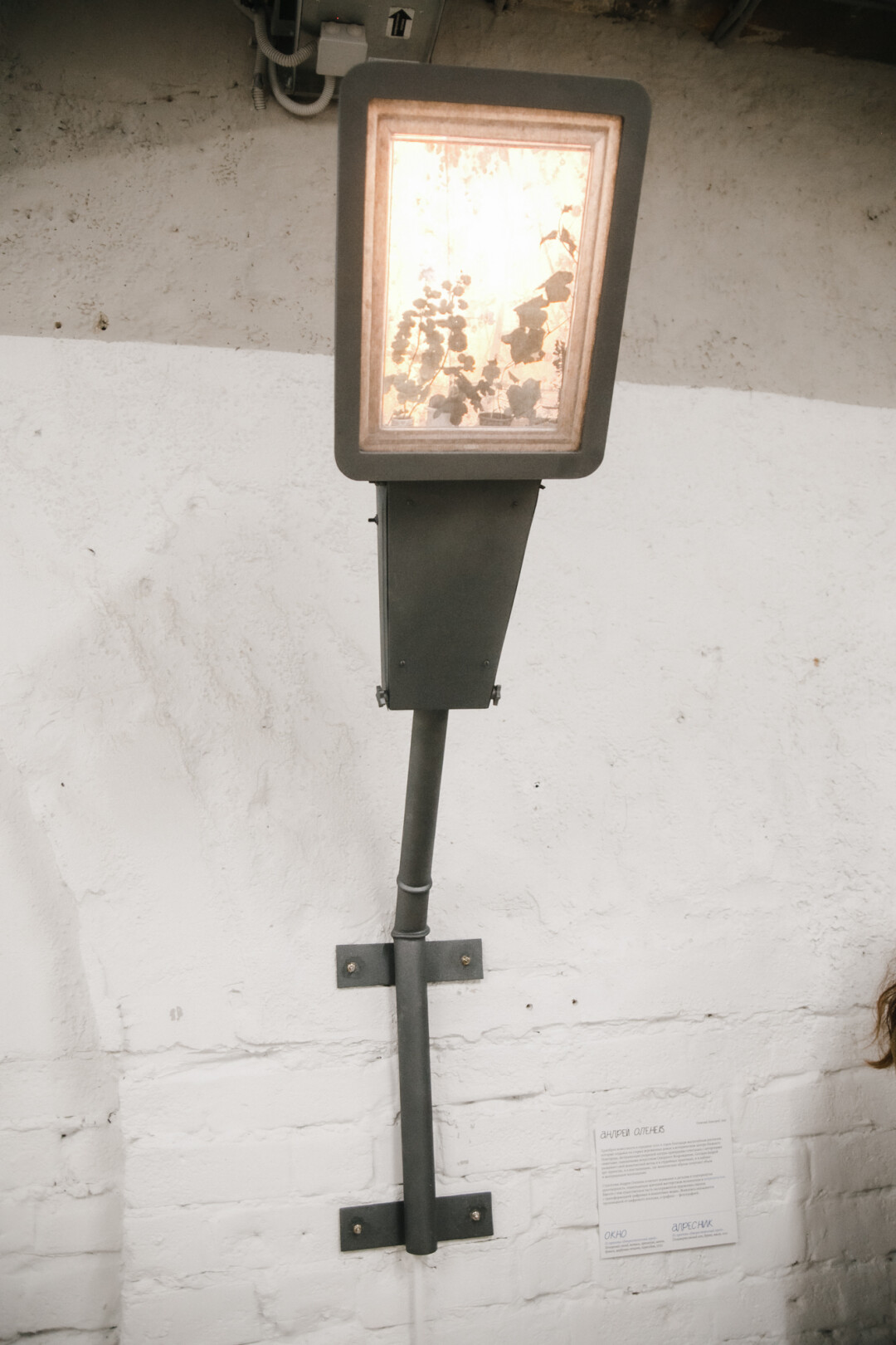 Еще есть фото Алексея Старкова, посвященные интимности памяти. Команда «ТОЙ» (Ерор и Сева), знакомая местным по разного рода проделкам на улицах Выксы, фиксирует живописью и графикой современную народную культуру – детские игры, городской фольклор, жаргон, ритуалы и обычаи. Андрей Оленев показал на выставке свое «Окно» (или все-таки фонарный столб?). Артем Филатов позаботился о безопасности выставочного зала, привезя «Огнетушитель» на футуристичном постаменте.