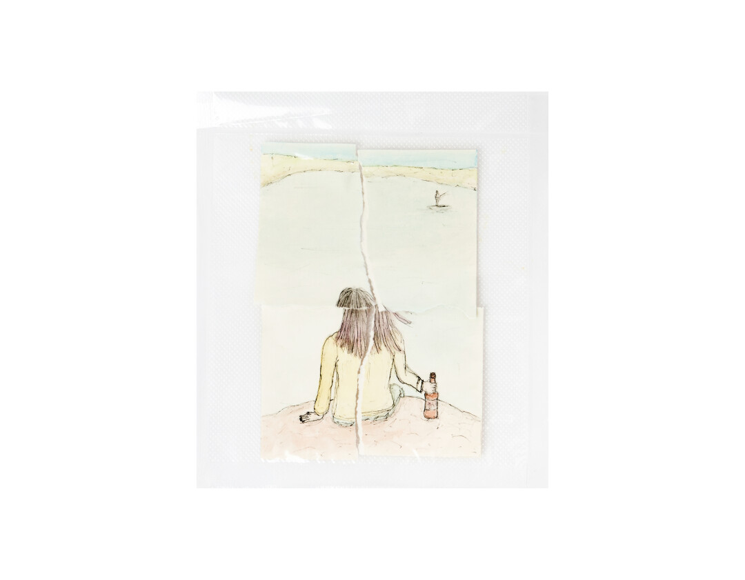 После недолгого времени парень с девушкой расстались. В порыве ненависти она порвала фотку и выбросила ее, но спустя несколько часов достала обрывки из мусорки. И из-за неимения дома ламинатора завакуумировала ее, чтобы сохранить память об этом прекрасном летнем дне.