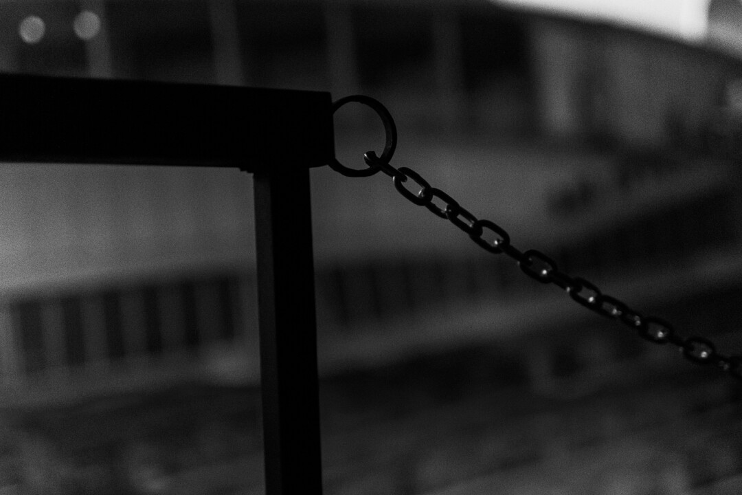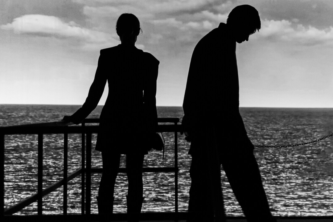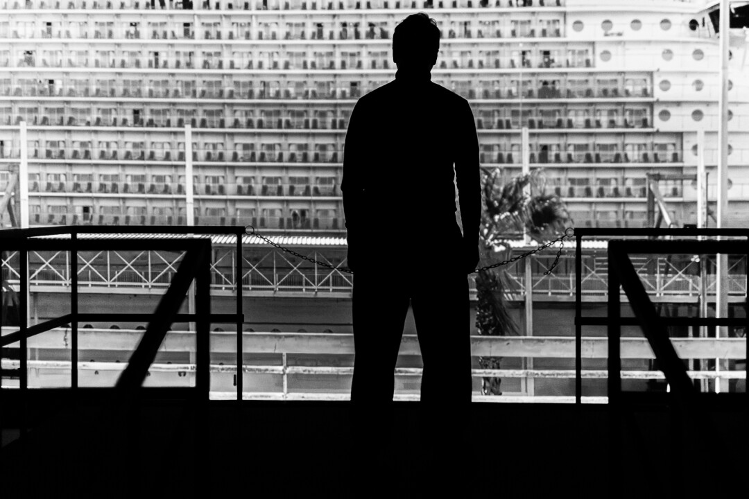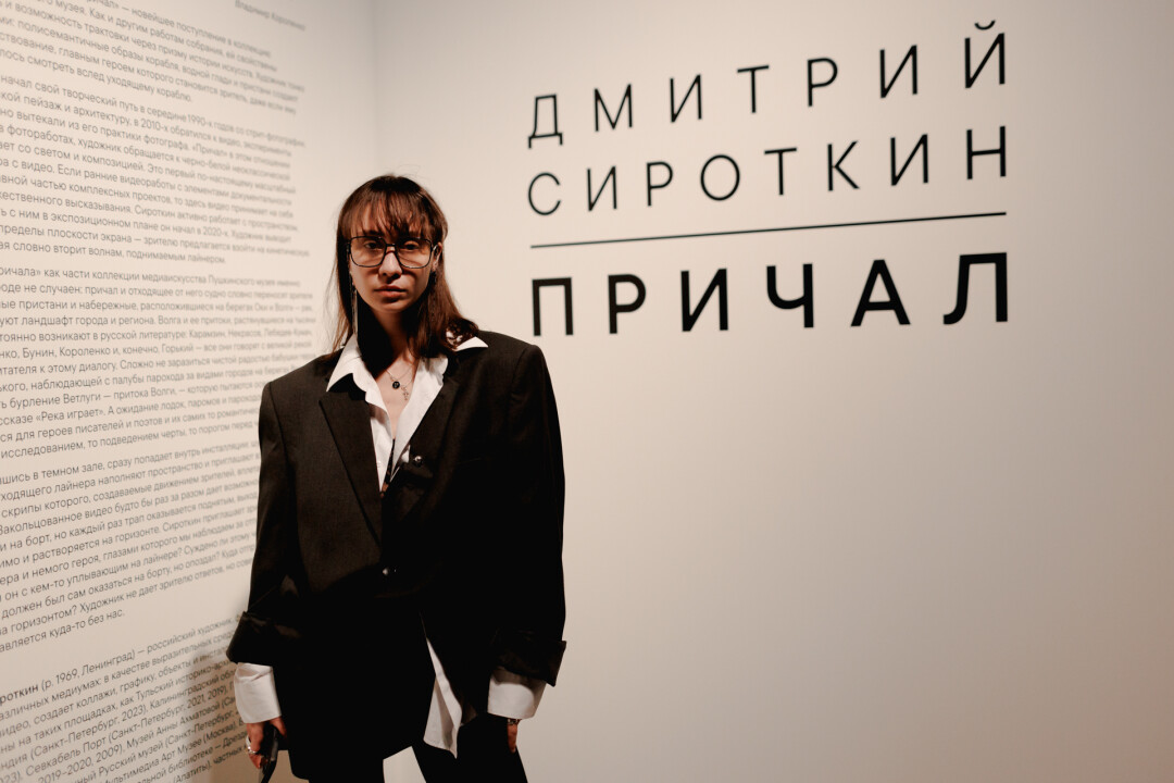 В закрытом плотными занавесками зале сразу попадаем на мизансцену – шатающийся причал. Согласно авторскому замыслу – зритель, оседлав строптивую конструкцию, под клокотание портовой разноголосицы наблюдает за отдаляющимся лайнером, задавая себе примерно два вопроса: это я опоздал на корабль или просто кого-то провожаю? В поисках равновесия вместе с куратором выставки Николаем Евдокимовым пришли к следующему выводу: причал – это граница между привычной жизнью и будущим, которого не случилось, что, возможно, и к лучшему.