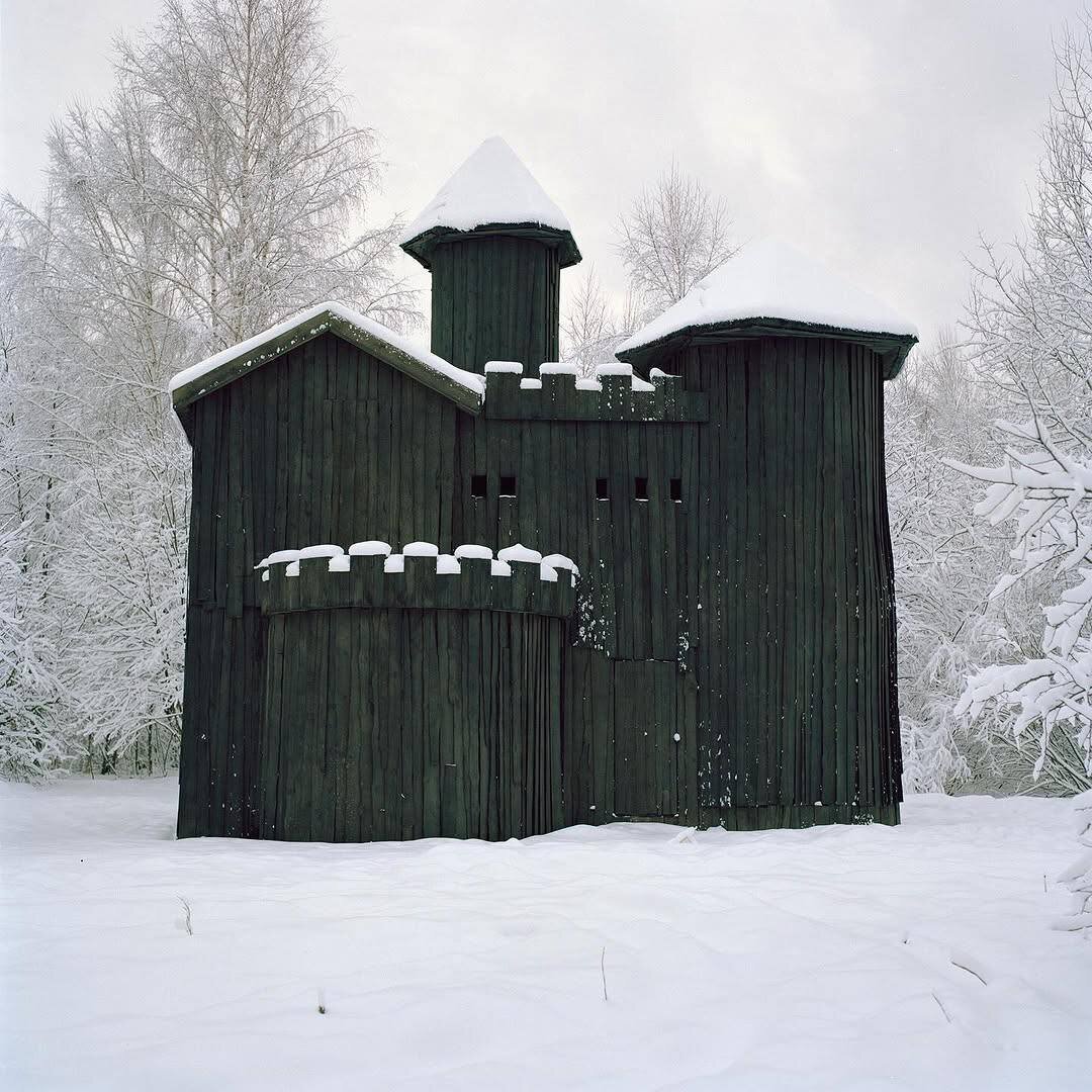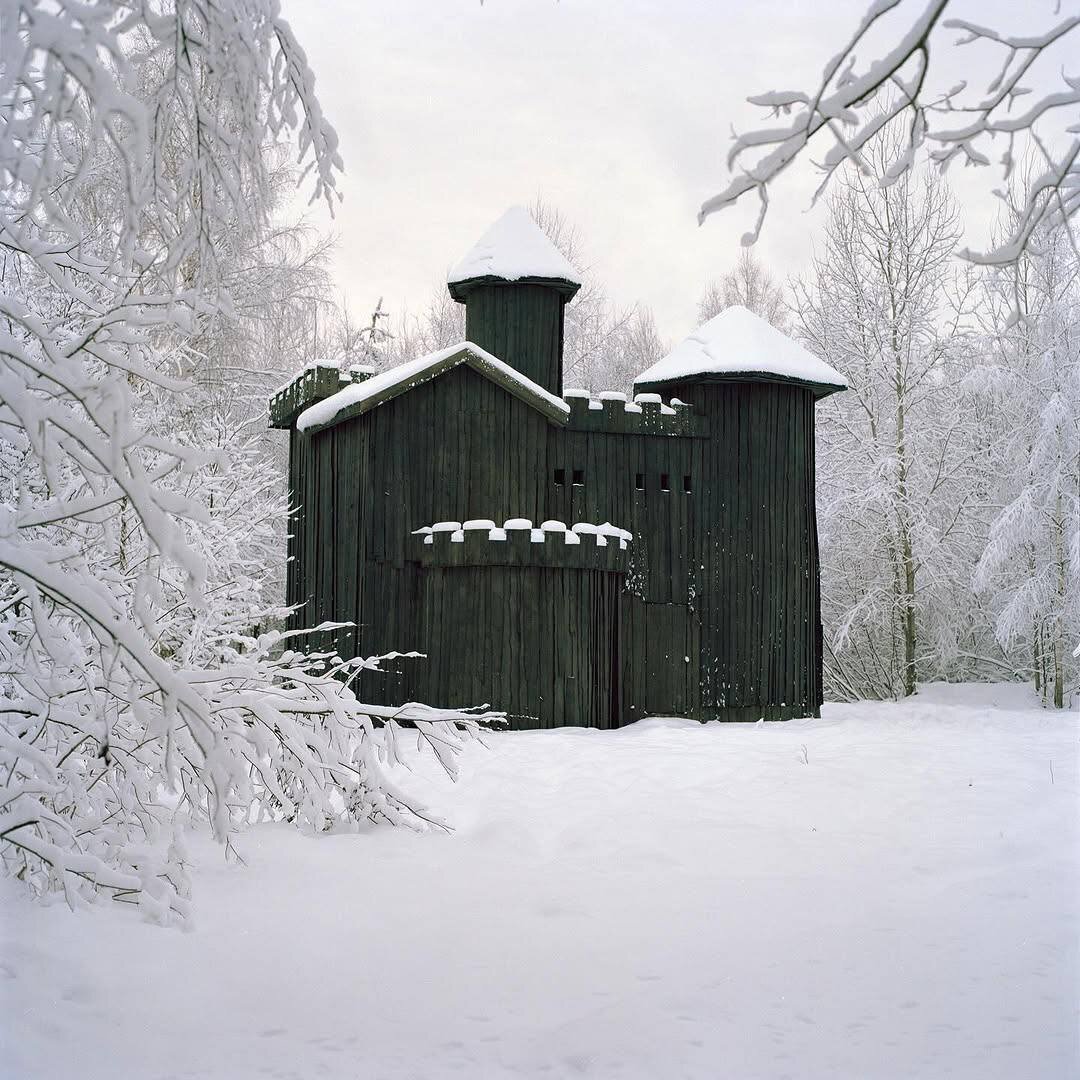 Резидент студии «Тихая» и лауреат премии ТОП 50 «НН.Собака.ru» представил свой новый сайт-специфик проект из серии «Загородные практики» (вот тут про его «Остановку» и «Омут»). У черного трехэтажного замка из дерева нет хозяина, а найти его можно только лично запросив координаты у Владимира. Стоит поспешить, работа имеет срок годности – автор через некоторое время демонтирует инсталляцию.