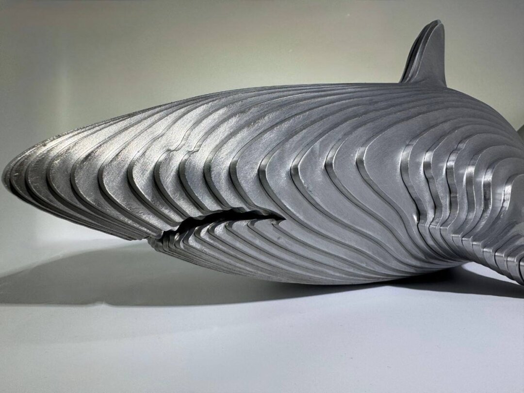 Акулья стая от проекта АлюмАрт (автор вручную создает уникальные арт-объекты из переработанного алюминия и предпочитает сохранять инкогнито) будет плавать в гавани «Рекорд» до 19 июня.