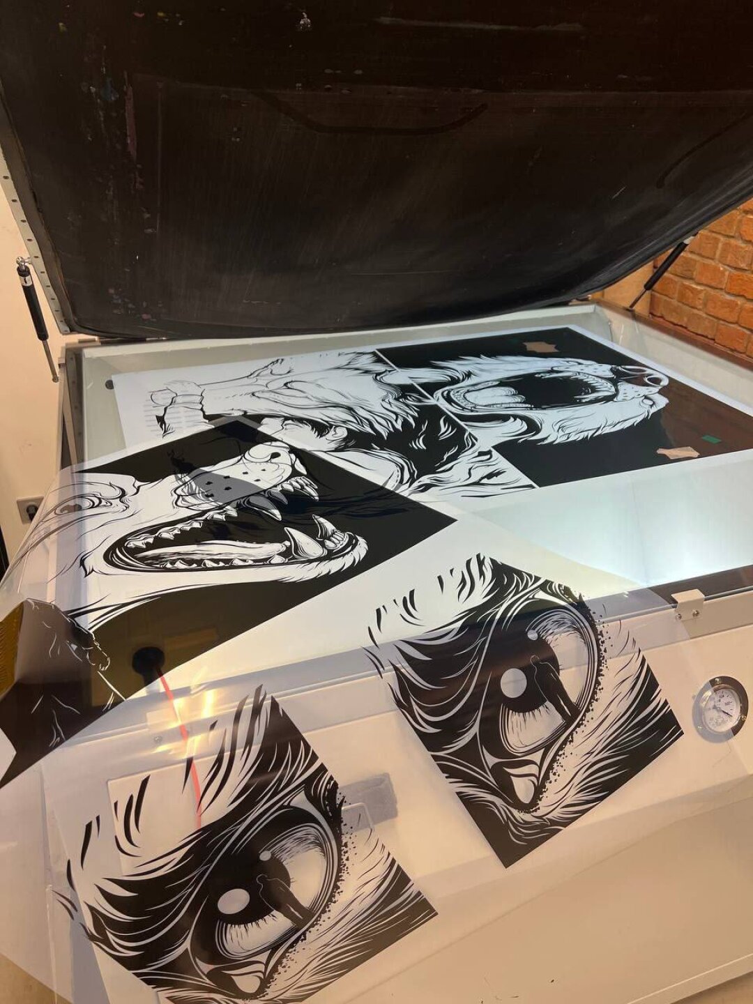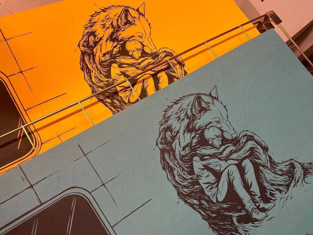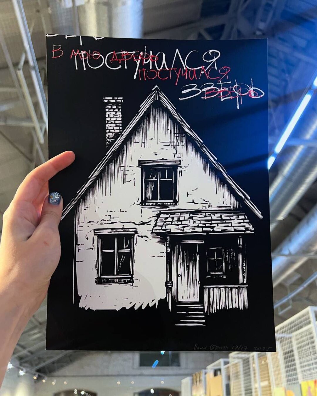 Полина Стриж, художница: «Выставку составляют шелкографии из серии «В мою дверь постучался зверь». Это мои новые работы. Я сделала их этой весной в Сводах (свободные мастерские Дома культуры ГЭС-2 в Москве, - Прим. ред.) при поддержке Фонда «Геометрия». Шелкография – это тип ручной печати, при которой создается матрица и каждое изображение печатается человеком вручную. Каждый принт является оригиналом работы, а сама работа состоит из всех заявленных принтов. Например, тираж 7 штук – значит, работа состоит из этого тиража и каждый оттиск является оригиналом. При заявленном тираже допечатка невозможна, тем более матрицу мы уже уничтожили».