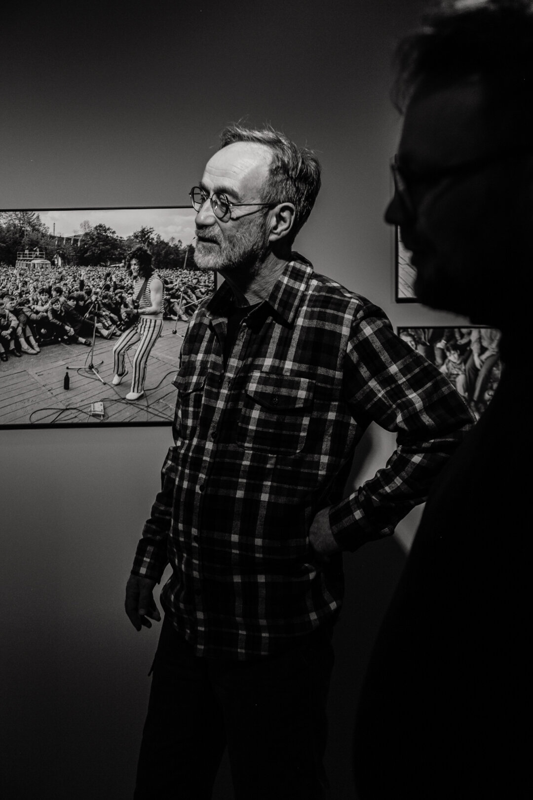 Алик: Стал. До этого я считал, что оптимальный размер выставочная фотография — это максимум 60 на 90 сантиметров: рассматривание — интимный процесс. И когда было предложено напечатать работы размером 3 на 2 метра, я удивился — зачем? Это же какие-то плакаты получатся! Но зрители выставки часто мне говорят, что они в большие фотографии как бы входят, становятся их частью. И это было для меня открытием! Некоторые из этих фото для меня знаковые. Например, входная фотография, снятая на концерте «Рок чистой воды» — для меня это портрет поколения девяностых.