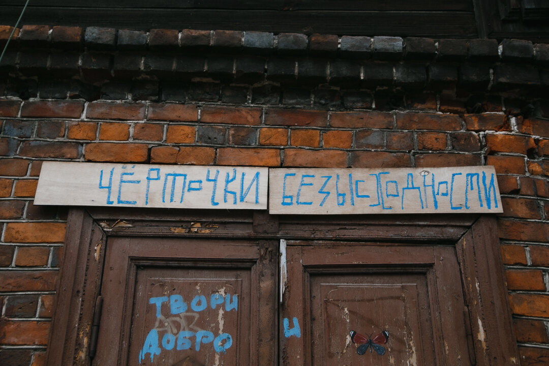 Исторический рефлектор и риторический вопрос на стенах Ашхабадской. Район протоконструктивистских деревянных домов, окруженных садами, был построен для технической интеллигенции в 1920-х. Последние 20 лет «Красный Просвещенец» оставался центром противостояния между строительными компаниями и местными жителями.