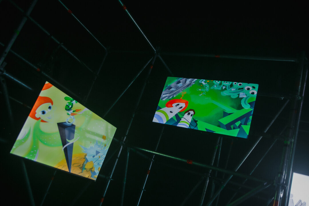 Цель авторов – переосмыслить «медиумы через призму и ретроспективу художественного архива»; у нас была цель – освободиться от чар (произошло 20-минутное залипание всех наших клавиш!) гипнорусалки-призрака из компьютерной игры, созданной Юлдус Бахтиозиной. Гейм-нарратив своей инсталляции-перформанса художница и режиссер конструировала с помощью нейросетей в течение месяца.