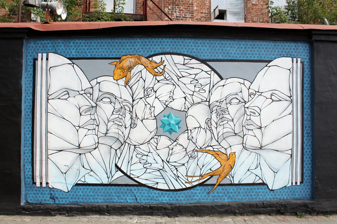 Рисунки Никиты Номерза легко узнать: часто это лица и фигуры, будто собранные из осколков. Они символизируют стремление человека к обретению целостности, приблизиться к которой позволяют знания, опыт и способность к взаимодействию. Составили вместе со стрит-артистом мини-гид по немногим сохранившимся в Нижнем работам из серии «Части целого», ей посвящена одноименная книга художника, вышедшая в конце августа.