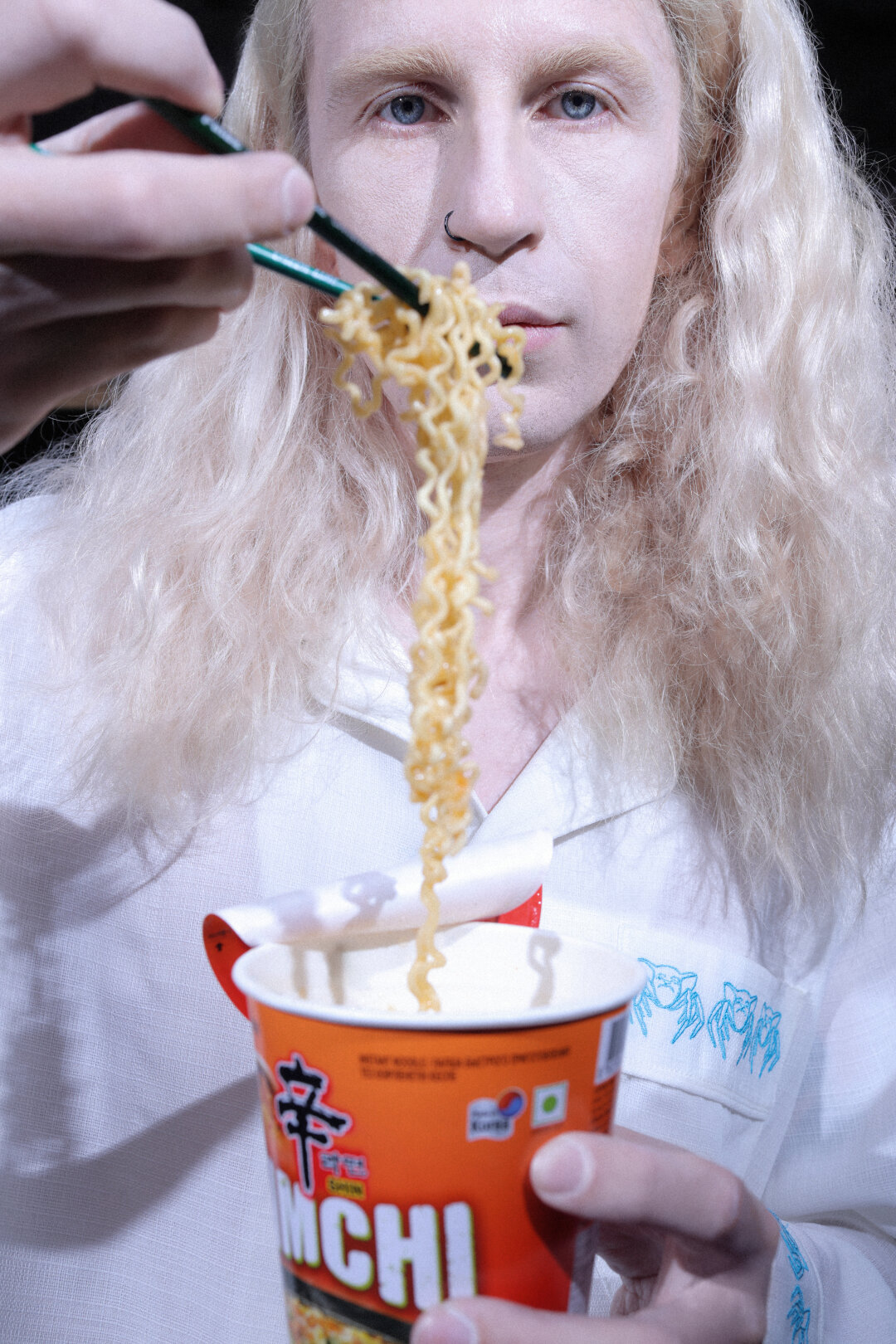 Фэшн-съемка стала для Максима Трулова кроличьей норой в мир, придуманный им самим: с черно-белыми мультами и кислотными обертками азиатского джанкфуда – обратная сторона потребительского рая. А точка бифуркации реального и выдуманного миров находится в заброшенном доме.