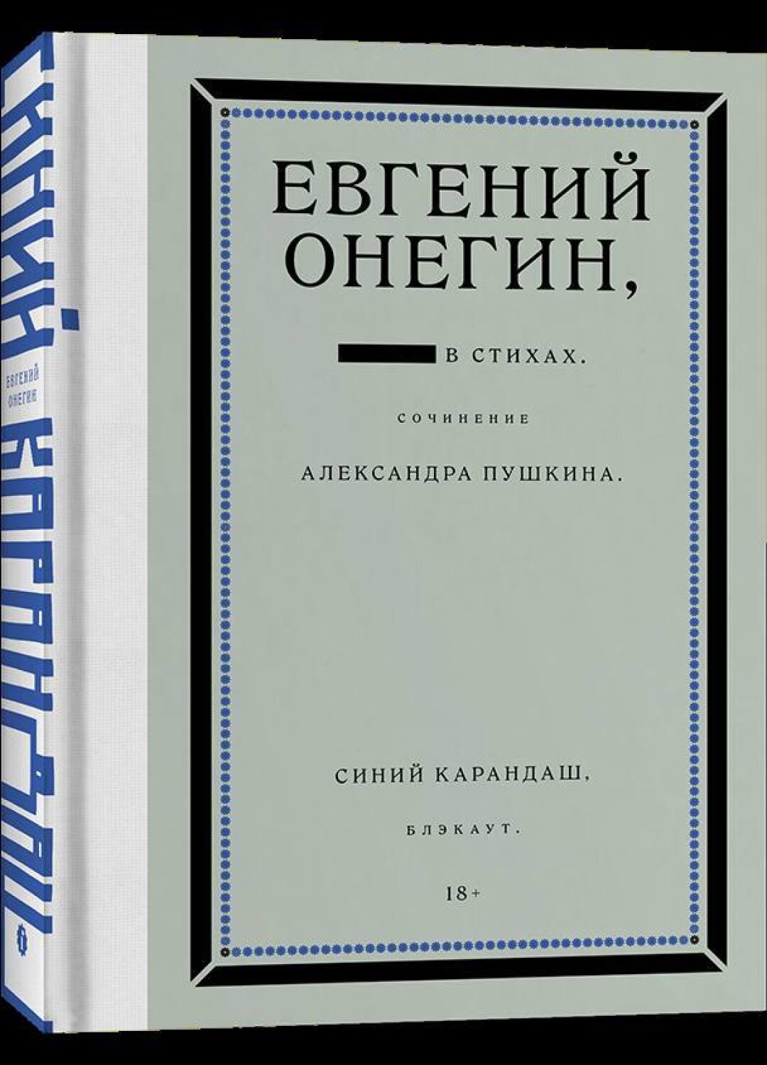К двухсотлетию публикации первой главы «Евгения Онегина» А.С. Пушкина анонимный уличный художник Синий Карандаш совместно с издательством Individuum представляет антиутопичную интерпретацию «энциклопедии русской жизни» с подзаголовком «Блэкаут». Главное отличие новой версии – авторские купюры стрит-артиста. Обильное цензурирование обнаруживает новые смыслы в знакомом тексте и очерчивает границы дозволенного читателю (дозволяется ему, прямо скажем, немного).