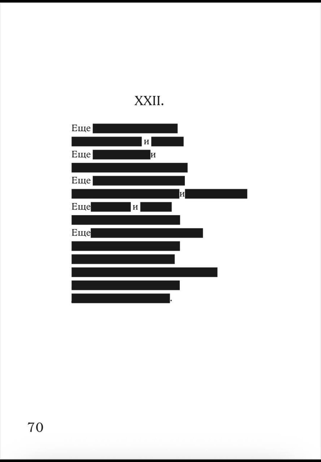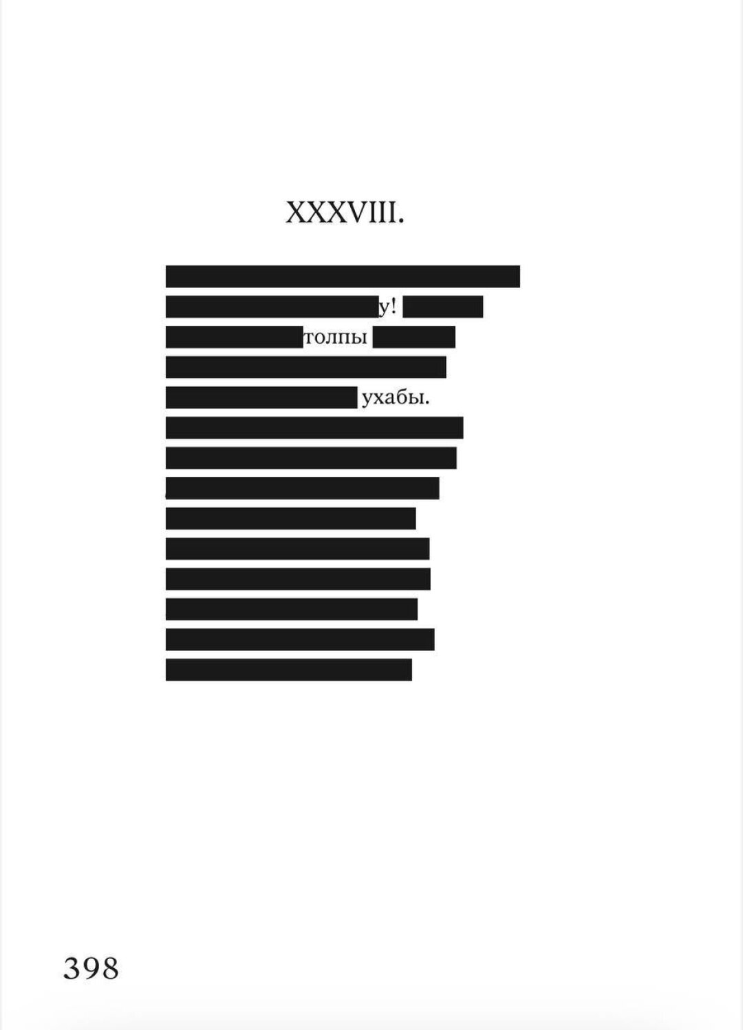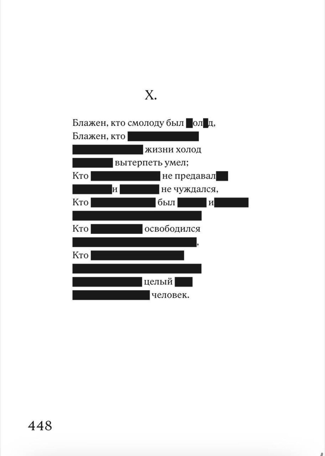 Наличие черного закрытия в книге было исходным условием. Был еще вариант сделать затемнения полупрозрачными, чтобы можно было заглядывать за запрет и читать Пушкина в оригинале, но в этом случае читатель получает слишком много свободы, которая сегодня может быть опасной. Так что для блага самих же читателей блэкаут строго черный, классический.