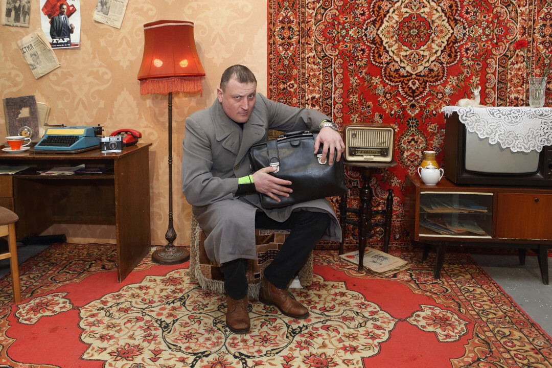 В фойе киноцентра «Рекорд», где проходила премьера, гостей встречала фотозона с  воссозданным интерьером рубежа эпох, галерея из обложек сатирического ретро-журнала «Крокодил» и выставка игр и головоломок, среди которых особо выделялись огромные кубики Рубика.