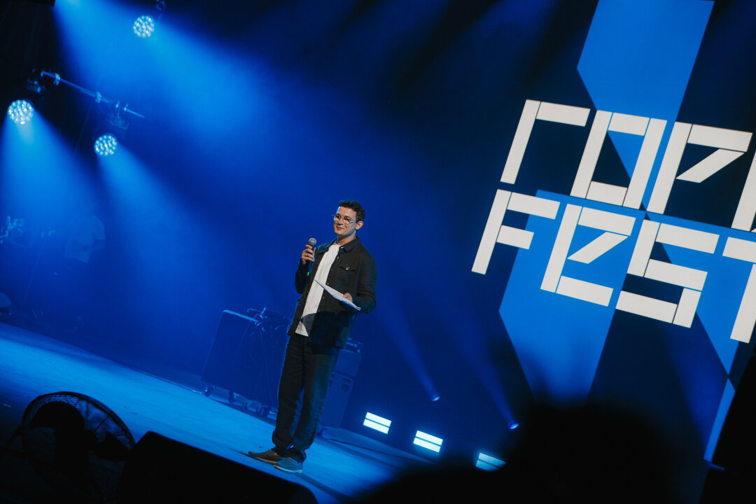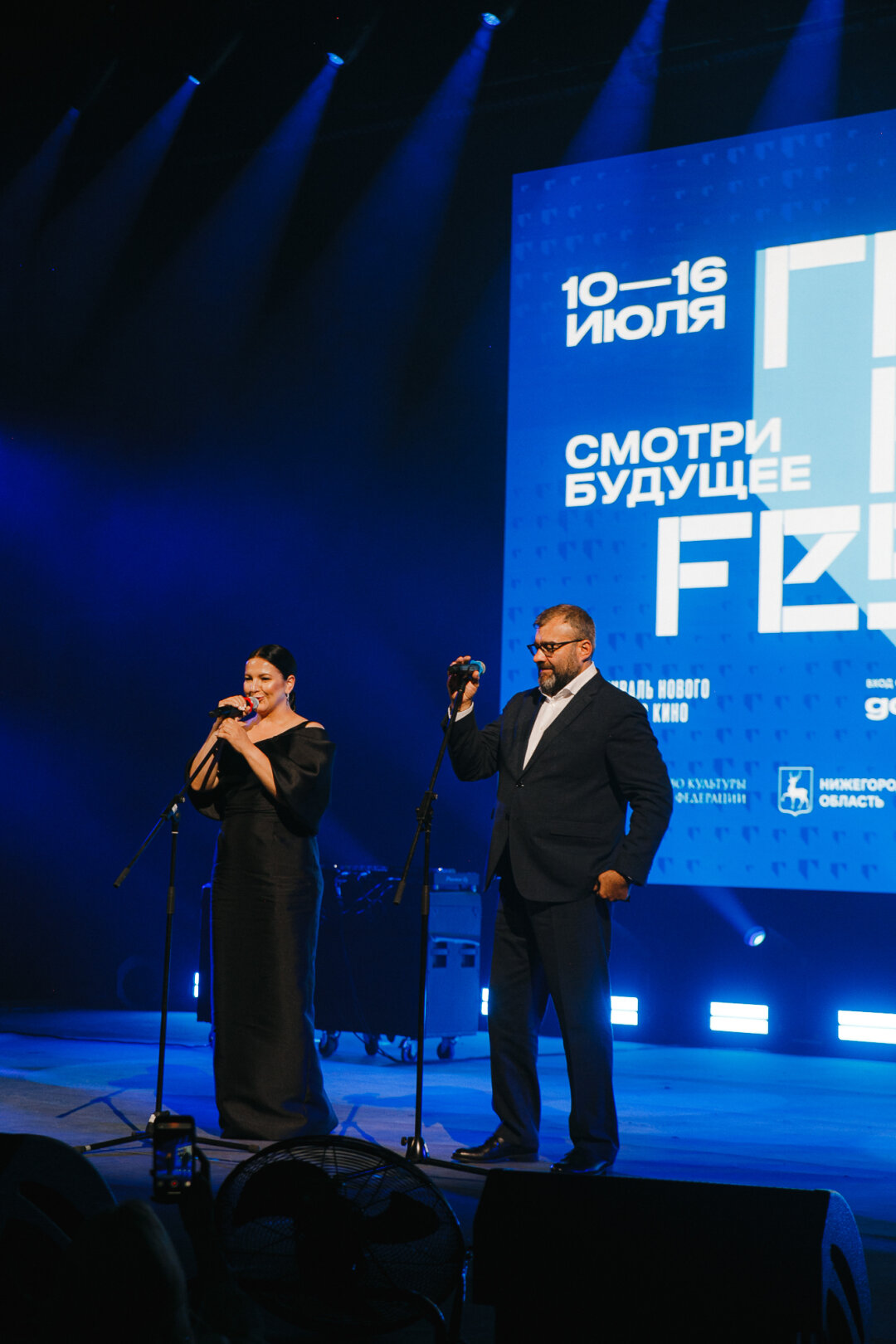 Потом в наше сердце бахнули стрелы Тоси Чайкиной, а завершать дивертисмент вышли Михаил Пореченков и Оксана Михеева (президент и директор феста), которые после небольшой, но уютной перебранки, конечно, все-таки открыли киносмотр (уже 9-ый по счёту).