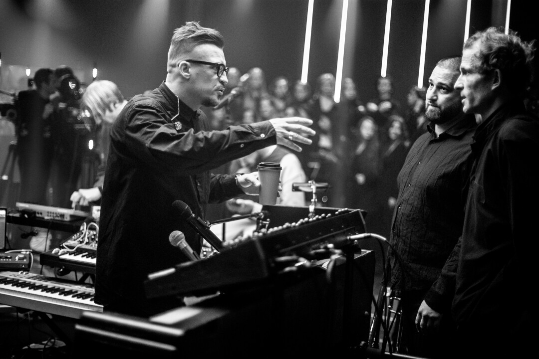 Около 150. Роль каждого элемента зависит от конкретного трека. У нас нет алгоритма, которому мы всегда следуем. Иногда само собой получается так, что у меня полностью всё сложилось, и я жду, чтобы ребята меня поддержали. А иногда я просто плыву по течению, и кто-то может начать играть что-то на тему, а я могу это зафиксировать. В процессе, конечно, нужен человек, который будет в роли направляющего, но это не значит, что все мысли и решения на нём, нужно просто чтобы кто-то говорил «стоп», «вот сюда», «это классно». Например, мы с хором работаем третий год, и в первый год мы поправляли каждую ноту, а сейчас степень доверия настолько высока, что мы уже ни о чем не переживаем. Мы сделали вместе уже 90 песен – нейронная связь уже почти идеальна. Музыка – это про коллаборацию, эта магия должна иметь место, и если этого не происходит, то музыка получается так себе.