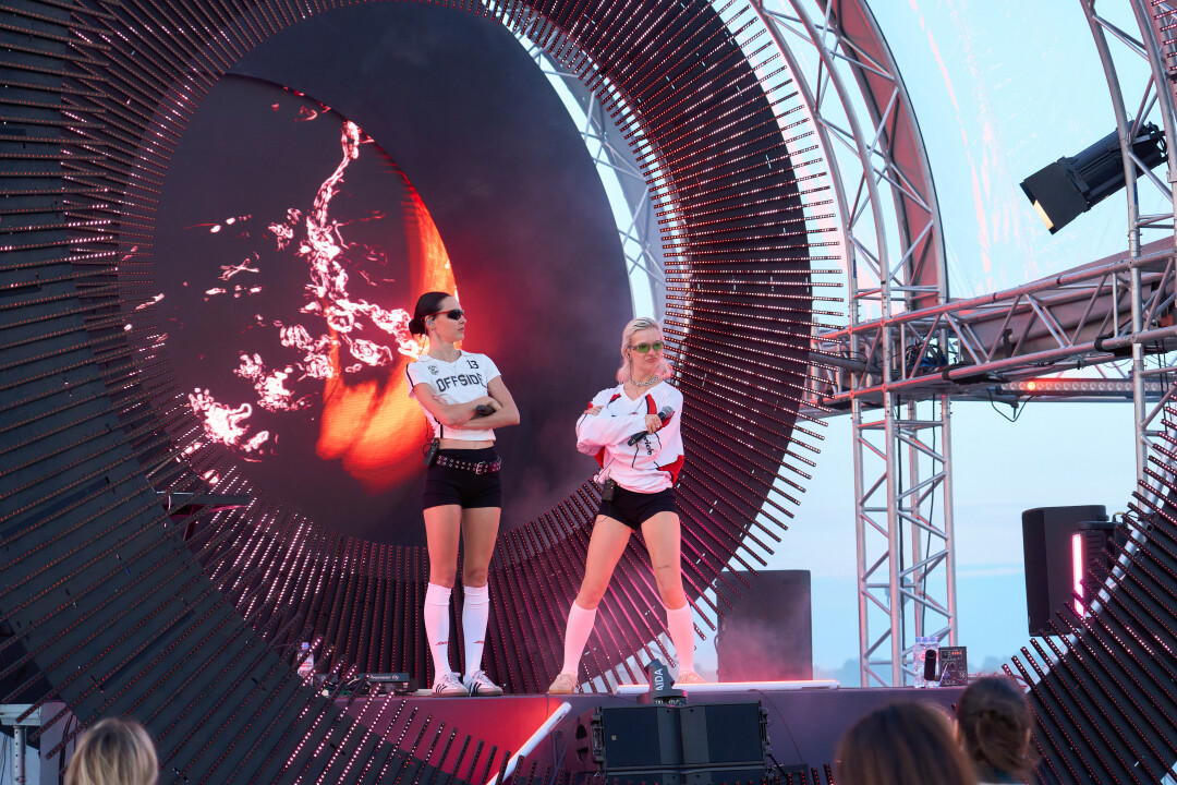 До 16:00 наблюдаем людей с печальными физиономиями, обсуждающих наполненность феста: «Ну, тут тухловато, согласись?» Положение спасает электронный дуэт LOVANDA. Правильно смешанный коктейль из нео-попа, хип-хопа, диско, хауса и джаза приковывает внимание уже было заскучавшей публики к главной сцене фестиваля.