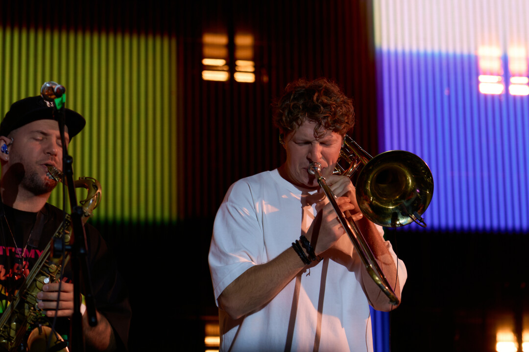Под громкие возгласы Дмитрия Губернеева минуем сцену и идем смотреть финал медиабаскетбольного турнира. Играют Dawgs и Pena, уважаемый нами «БК Пари НН» в Best Of Two, к сожалению, не попадает. После бесчисленного количества заброшенных «трешек» Dawgs забирают победу, а мы идем слушать Therr Maitz и их каверы на Крем Соду.