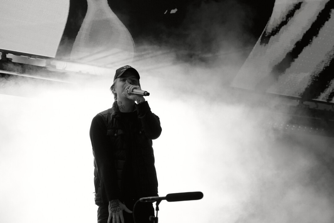 Застаем последний трек из сет-листа Антохи и вместе с рэпером Недры, который спустился в фан-зону, бросаем табак.