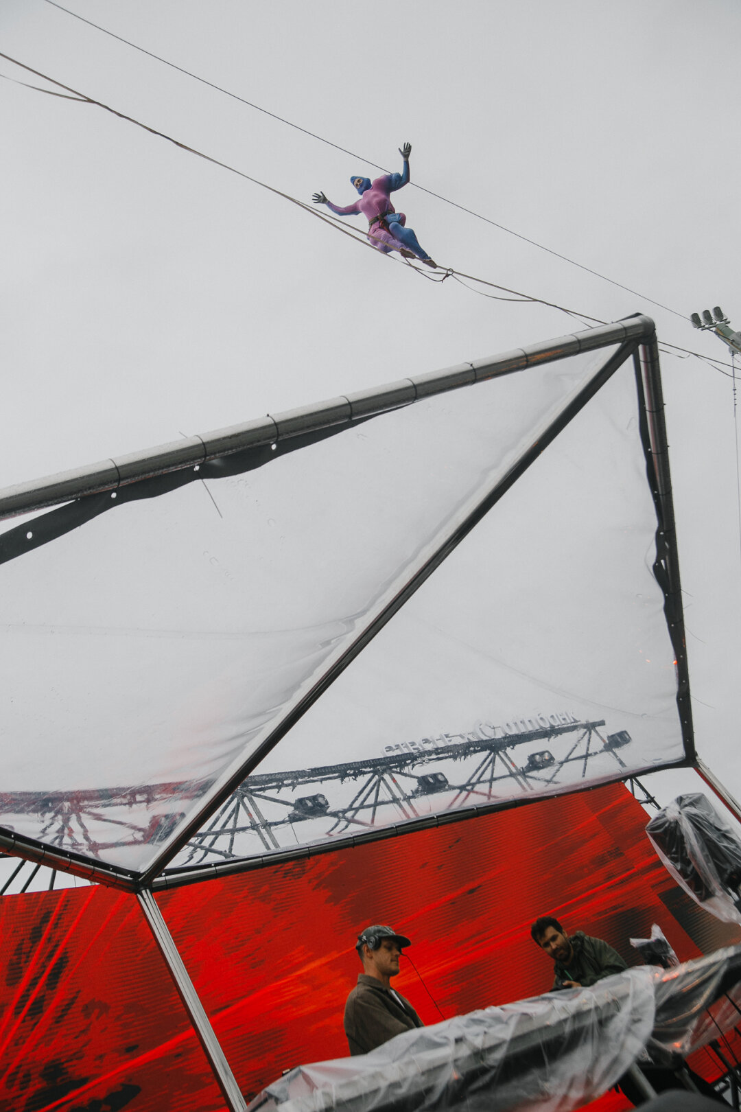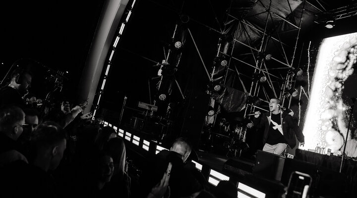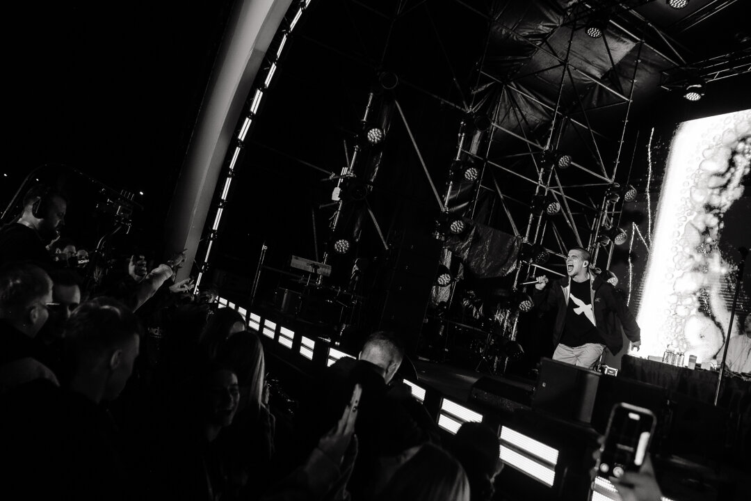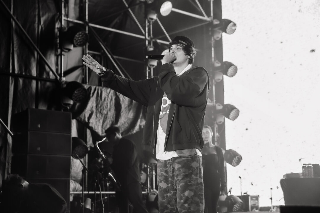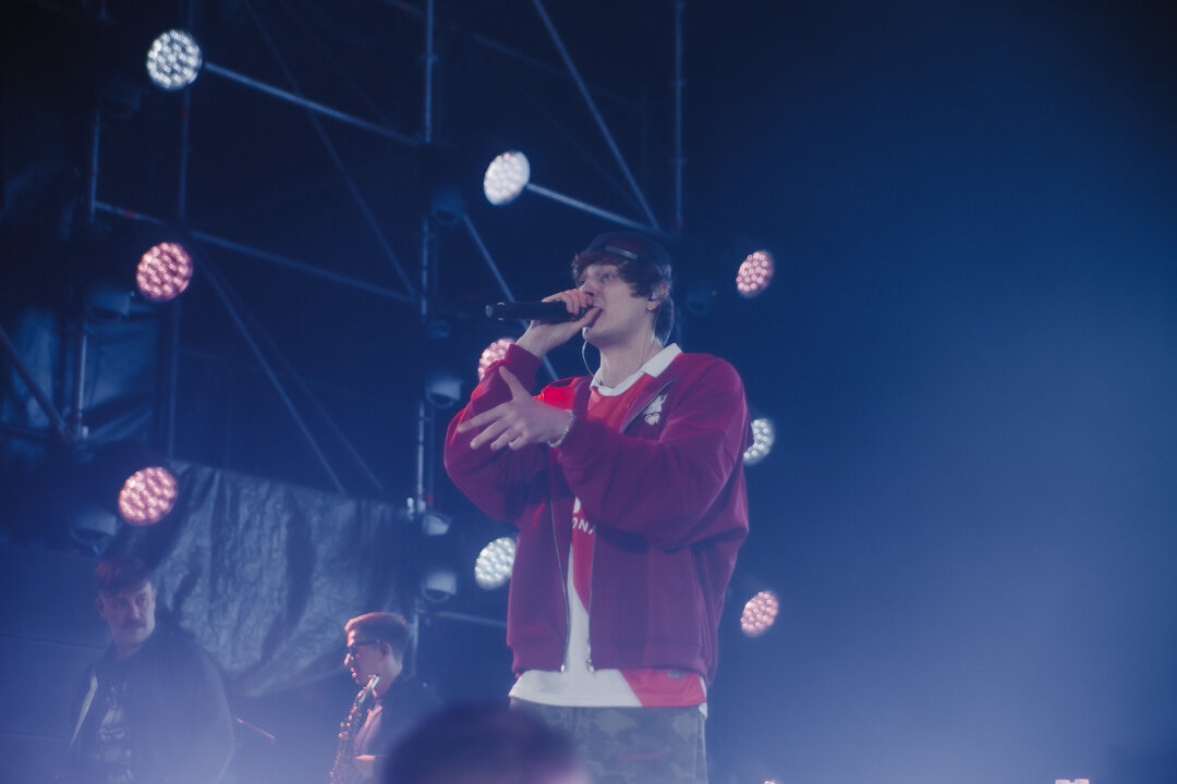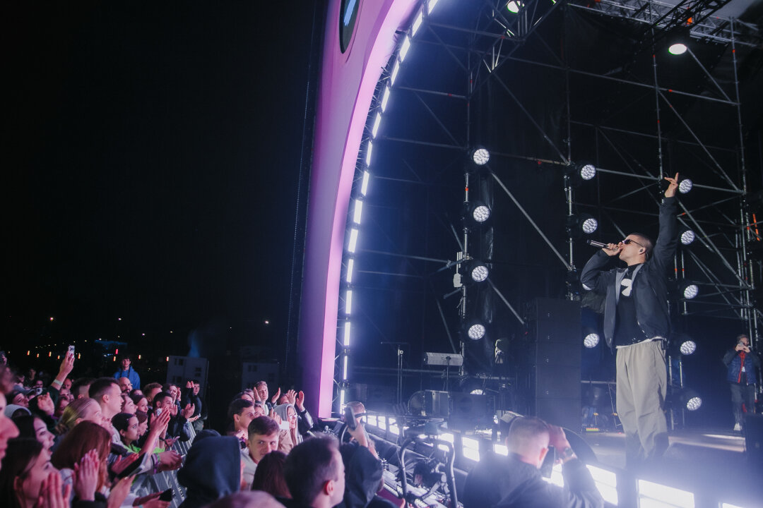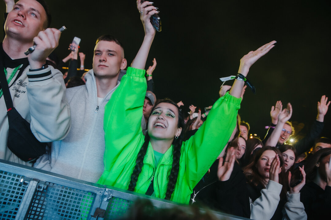 В 19:00 небесные громыхания заменили перегруженными басами: явившийся мощно Icegergert, читал под плюс и был чуть более робок в движениях, чем полагается главному хитмейкеру 2025 года (может, все из-за малого опыта выступлений на больших площадках).