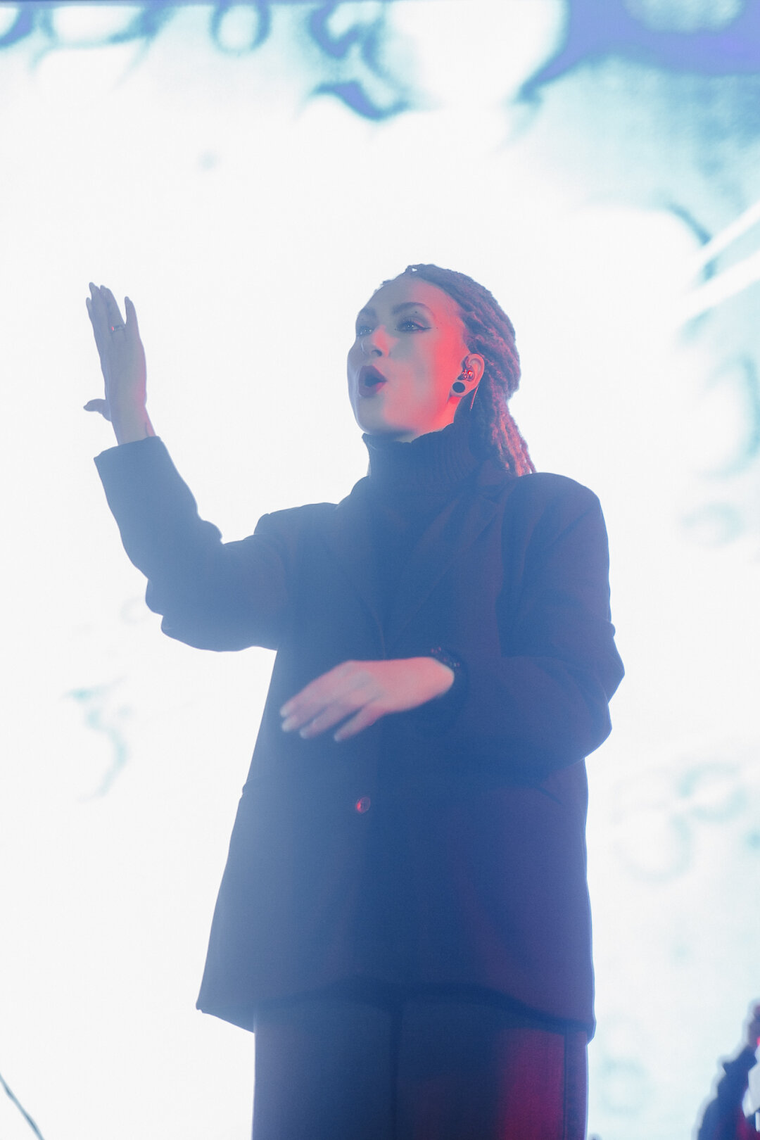 Следом вышел главный музыкальный хамелеон и старший брат всех фрешменов – Feduk. В трек-листе исключительно шлягеры («Розовое вино», «Ламбо», «Краски»), которые переводили на русский жестовый.