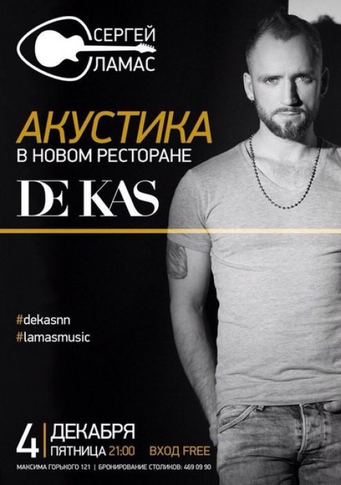 4 декабря ресторан De Kas приглашает всех ценителей хорошей музыки на концерт великолепного Сергея Ламаса.