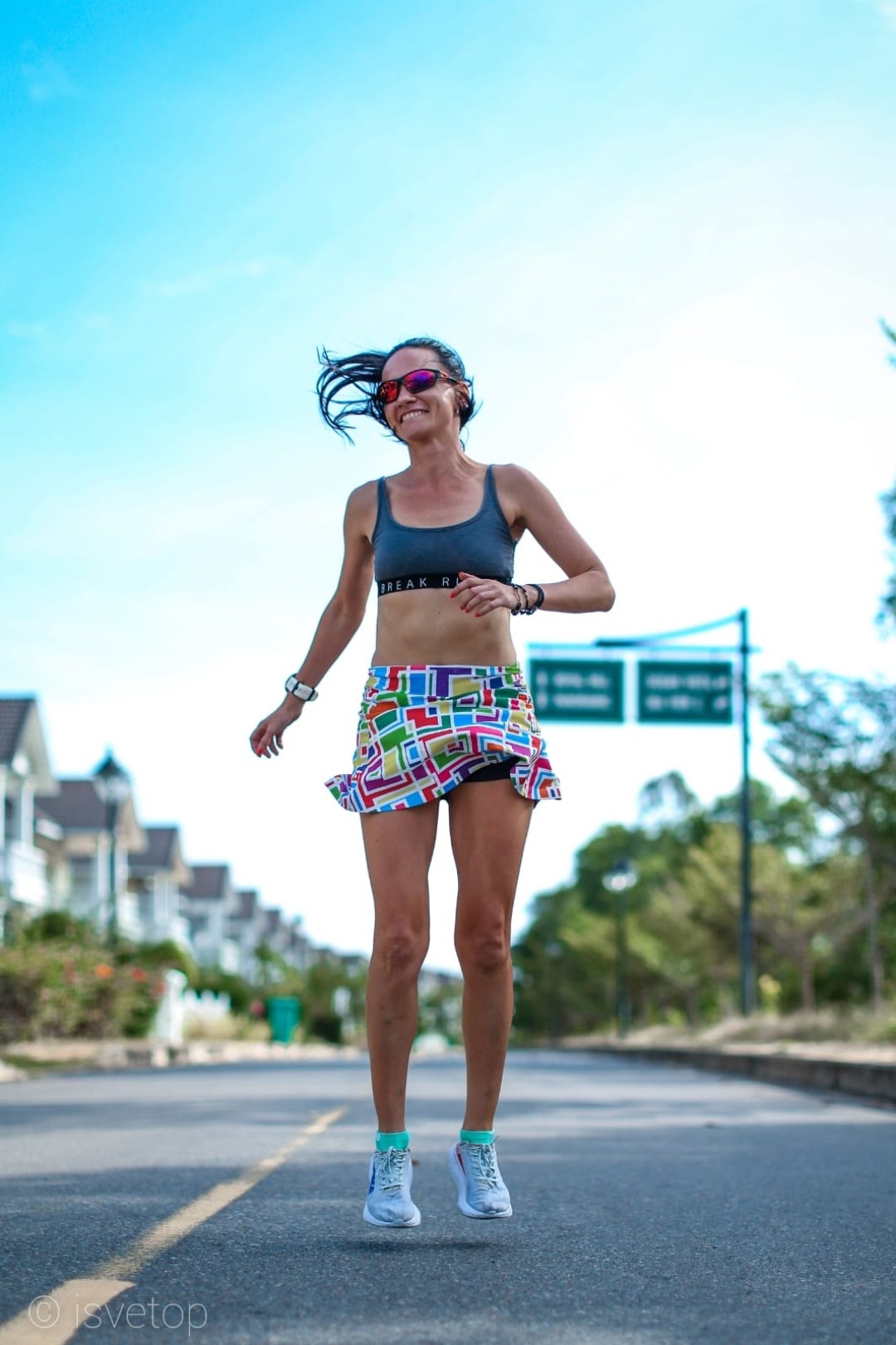 Я получаю удовольствие от общения, мне нравится смотреть на спортивных людей, красивых, жизнерадостных, здоровых и счастливых, которые вышли бежать такую серьезную дистанцию. Я от этого получаю невероятное удовольствие. Как производитель женских беговых юбок, также я получаю удовольствие, сравнимое, наверное, с экстазом, когда я вижу девочек, которые бегут в юбках-шортах моего бренда.