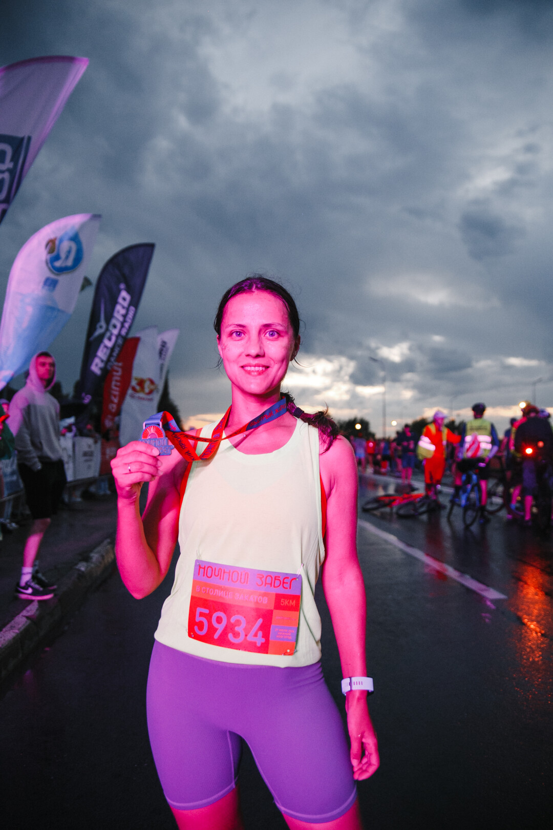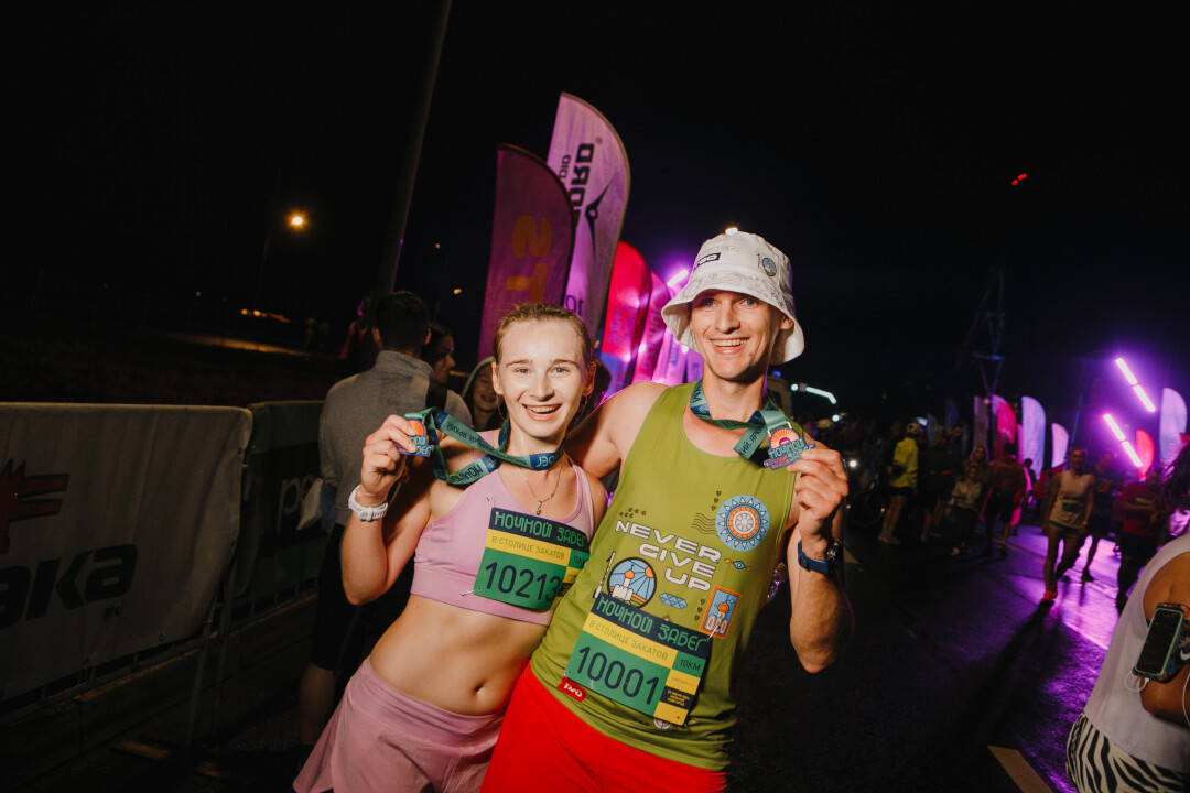 Пообщаться с организаторами на площадке не вышло. Они бегали вместе с участниками. Только не ради медали, а ради комфорта каждого бегуна. Очень мокрые, очень сосредоточенные! Директор агентства «Рейтинг» Наталия Бочарова лично (!) регулировала движение перед финишем, чтобы абсолютные победители «Ночного забега» никого не сбили на пути к победе и были довольны своими результатами.