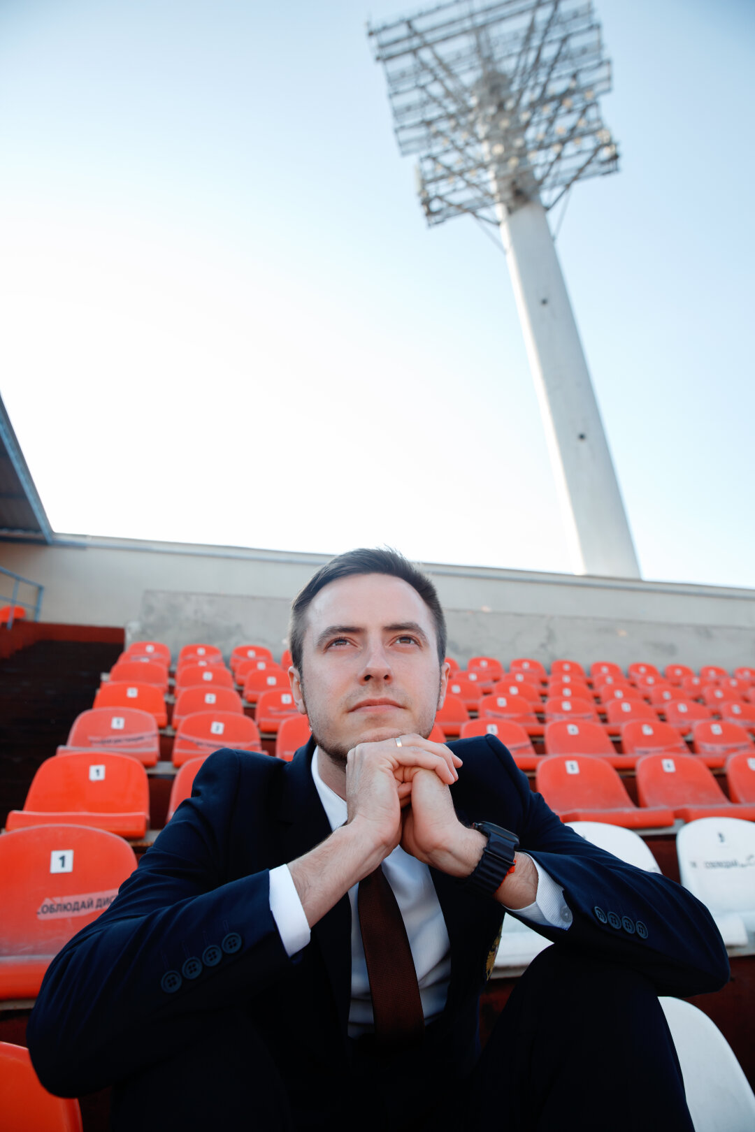 Андрей Вдовин сфотографирован на стадионе «Локомотив», где сейчас проходят его тренировки. Спортивная арена была построена в 1932 году и за почти вековую историю успела четыре раза сменить название: раньше это был стадион Крайсовпрофа, ВЦСПС и «Торпедо».