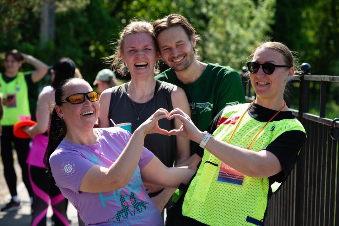 У нас очень красивый вид на озеро и парк, есть два небольших подъема. Несколько раз пробегаешь мимо точки старта — значит, получаешь много поддержки. Часто летом, а иногда и осенью, участники и волонтеры идут после финиша купаться или кататься на сапах. Но главное – очень дружная команда волонтеров, это признают практически все гости. У нас душевно в любую погоду!