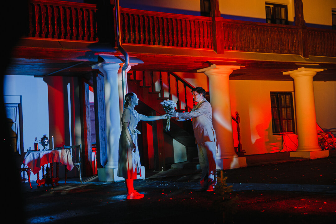 Выдыхали (и завороженно вздыхали!) во дворе усадьбы Рябининой – чеховского «Дядю Ваню» столичный режиссер Виктория Печерникова насытила контрастами – музыкальными (от колокольного звона Вознесенской церкви до Наутилуса Помпилиуса), световыми и сценографическими (не первый раз на сцене «Специфика» машинерия!).