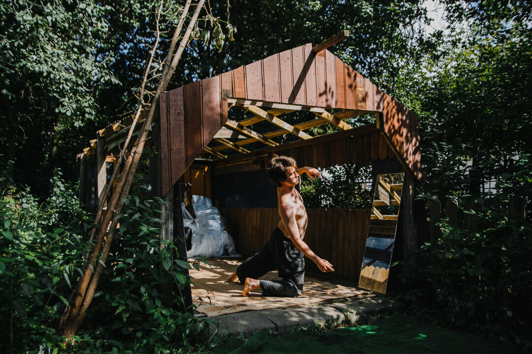 Начали спортивно (ведать не ведали, что таким пируэтам учат в театральном) на «Физ-ре» Дмитрия Мулькова. Мы, конечно, знали, что в партиципаторном спектакле зритель принимает активное участие, но к полноценной разминке с приседаниями, пробежкой и футболом были готовы не то чтобы все.