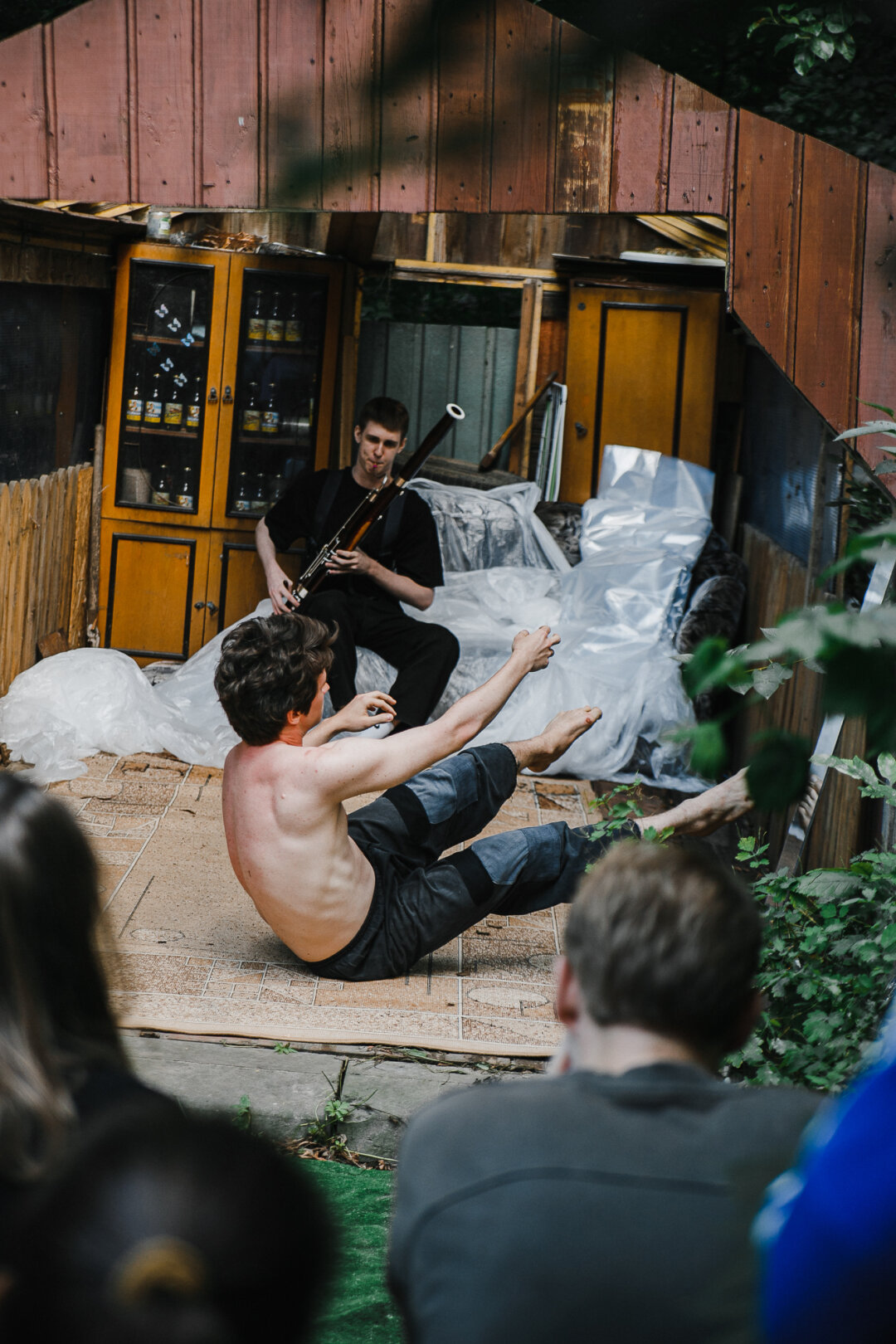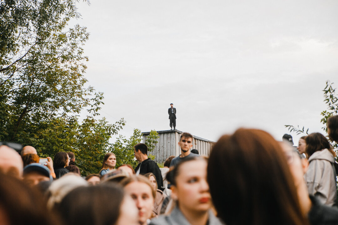 В свою очередь, Ярослав Жевнеров предложил свое осмысление текста Горького — его «Мещане» оказались посреди пустых павильонов закрытого ТЦ «Этажи», который у многих нижегородцев ассоциируется с семейными вылазками и сытыми 2010-ми. В авторском тексте история Горького переосмыслялась, и проблема коммуникации между поколениями была выражена актуальным для 2025 года языком.