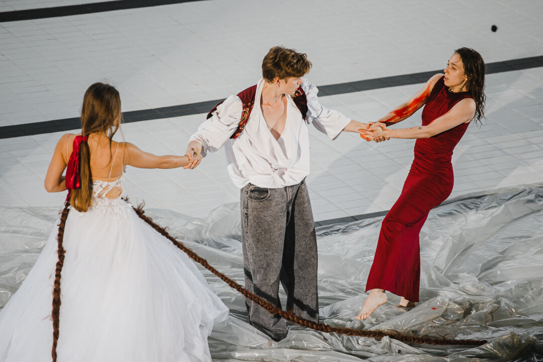 Но главное было впереди: недописанная Пушкиным, но завершенная Екатериной Половцевой, «Русалка» в обезвоженном бассейне «Дельфин» покорила, кажется, всех – пластичностью Кристины Кондриной, сказочным хэппи эндом после трагических поворотов, кафельными берегами, целлофановыми реками (которые и волны Днепра, и свадебная фата, и любовные сети князя-изменщика с «мохнатым сердцем»).