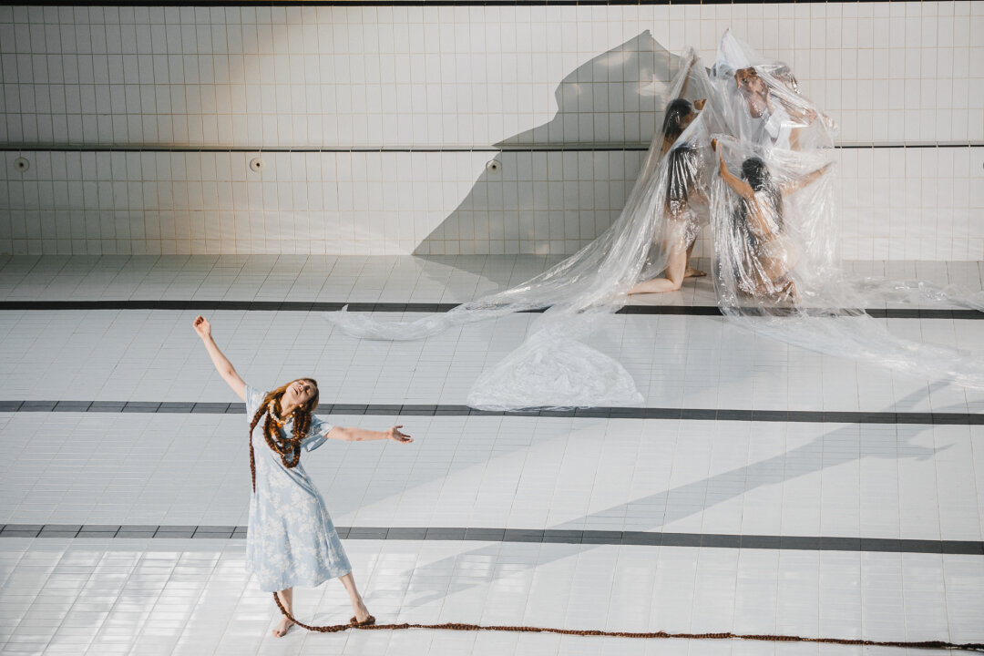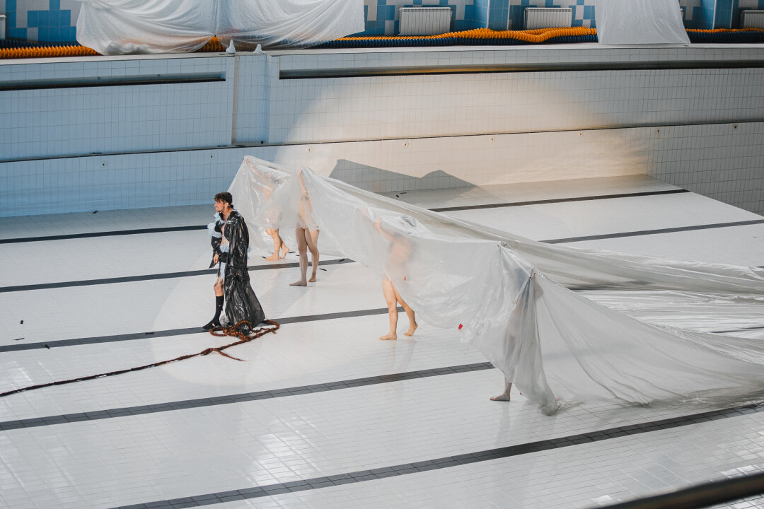 Екатерина Половцева в своей «Русалке» много работала с пластикой, танцем и звуком. Показ состоялся в бассейне «Дельфин», где своя уникальная акустика, которая придавала мистичности и сказочности происходящему. Кроме того, режиссер экспериментировала с визуальными метафорами через реквизит — многометровую полиэтиленовую пленку, имитирующую волны Днепра, веревки и сети, а также через само пространство — стерильность кафельной чаши бассейна, отсутствие воды (жизни). Надя Кубайлат в «Бесприданнице» провела параллель между образом героини, уязвимой перед обстоятельствами, и огромным торговым судном — баржей, на которой разворачивалось действие. Тема торговли тоже стала значимой в спектакле — Лариса уподобляется товару, у нее словно нет собственной воли, зритель сопереживает ей.
