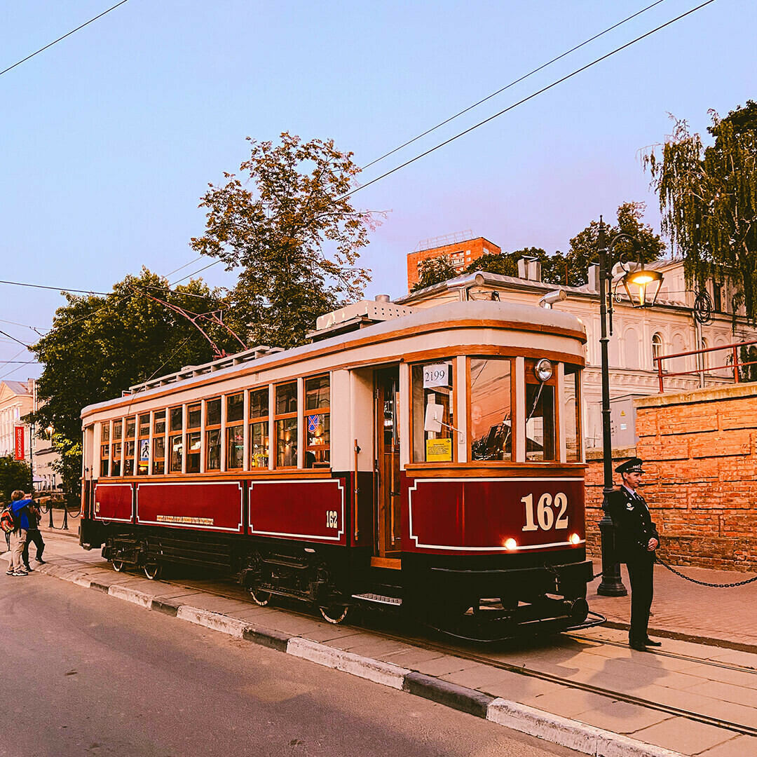 С 9 по 12 мая с 10:30 до 21:00 исследуем Рождественскую на музейном экспонате. Таких трамваев всего два в стране – у нас и в Москве (и им по 80 лет!). Курсируем между площадью Народного единства и Благовещенской.
