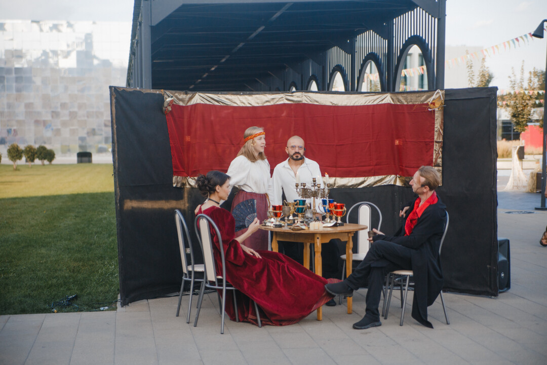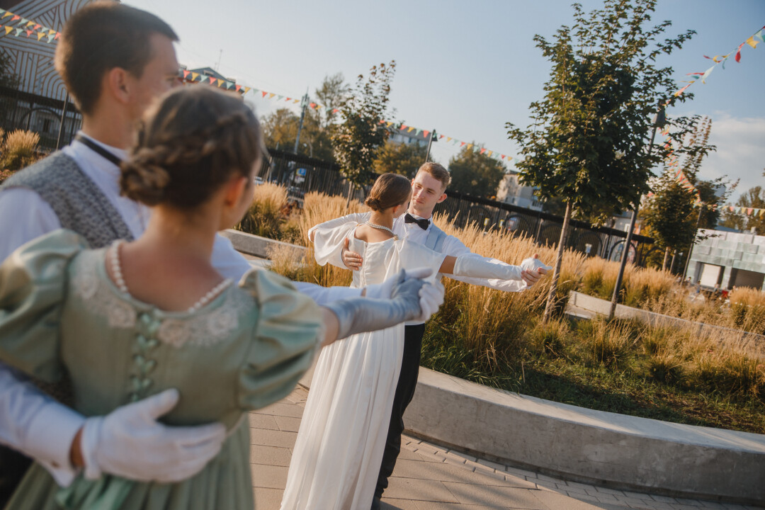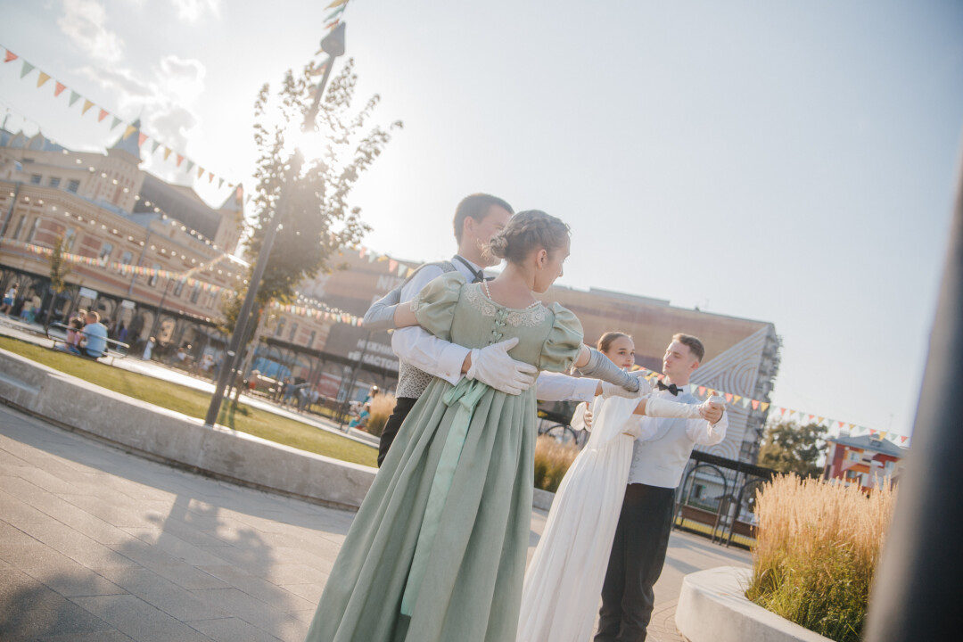 Завершить фестиваль решаем размашисто – на балу! Там же, где дают театральные этюды по «Пиру во время чумы». Пока влюбленные пары кружатся в неспешном полонезе, рядом разворачивается символичная трагедия о побеге от мрачных мыслей.