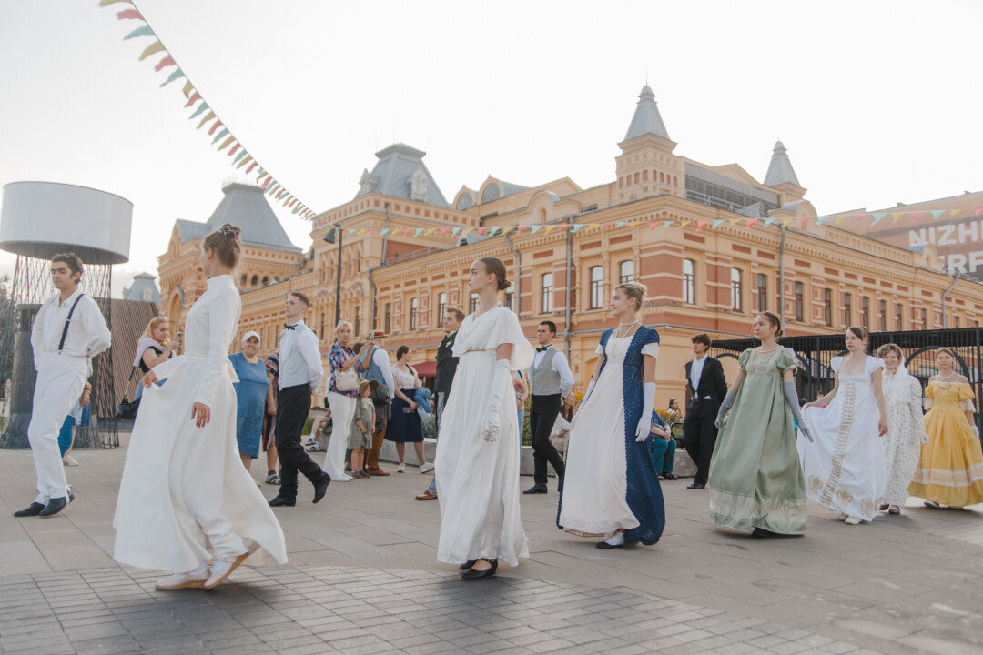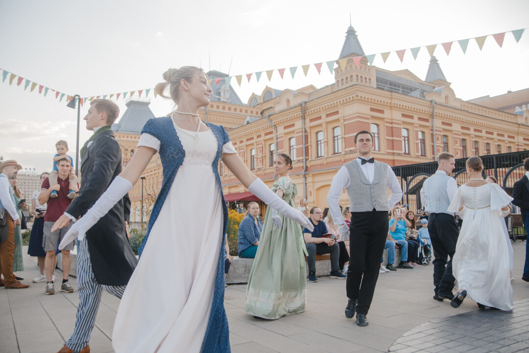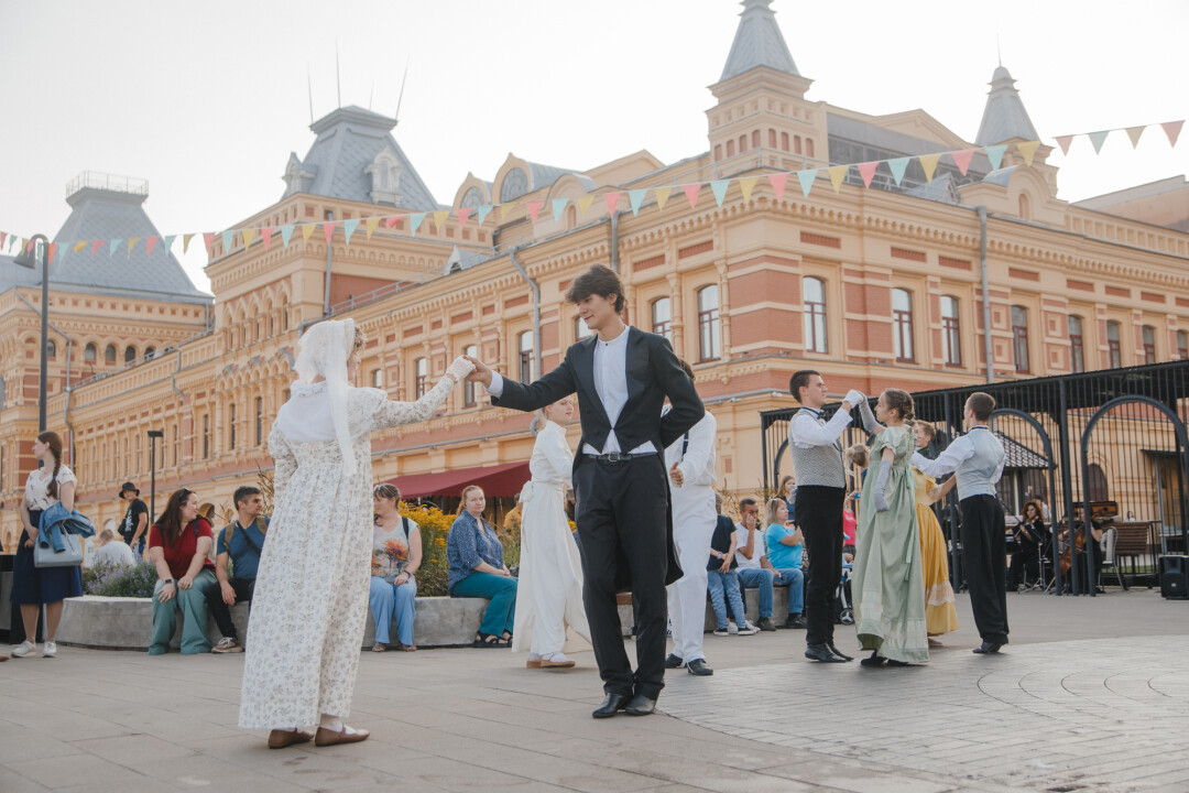 Завершаем двухмесячный марафон масштабных гуляний, вдохновленных эпохой и творчеством Александра Пушкина, на Нижегородской ярмарке. В последний день фестиваля «Ярмарка в городе» вальсируем, воздвигаем дом в окрестностях Французской Ривьеры и слушаем Nirvana в исполнении пианиста.
