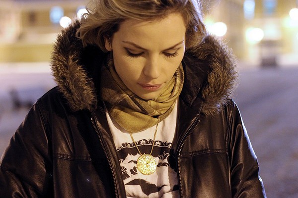 На Даше: Шарф — мамин, ботинки — фэйковые Timberlands брата, футболка ZDDZ, пуховик Supreme, джинсы 7 for all, винтажная подвеска YSL.