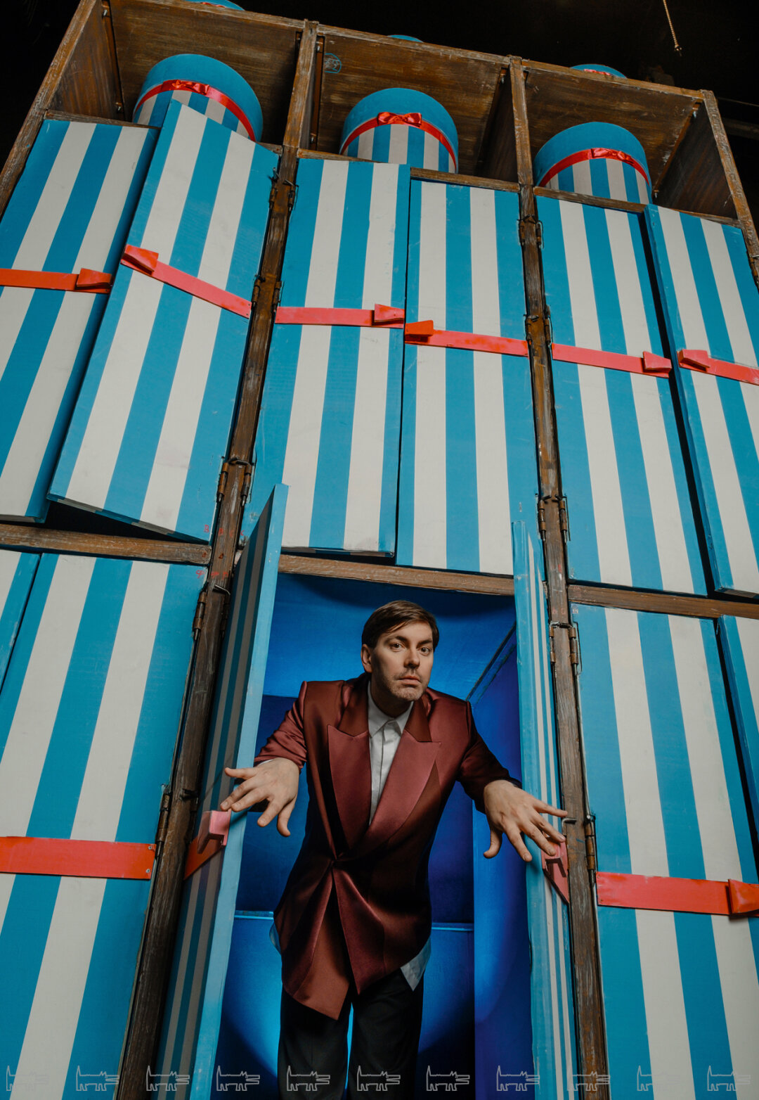 Леонид сфотографирован на бэкстейдже Новой сцены Мариинского театра в доллкорном шкафу-хранилище из лавки Коппелиуса: именно здесь обитают 12 кукол из новой постановки балета «Коппелия» в хореографии Александра Сергеева (летний «Щелкунчик»!).