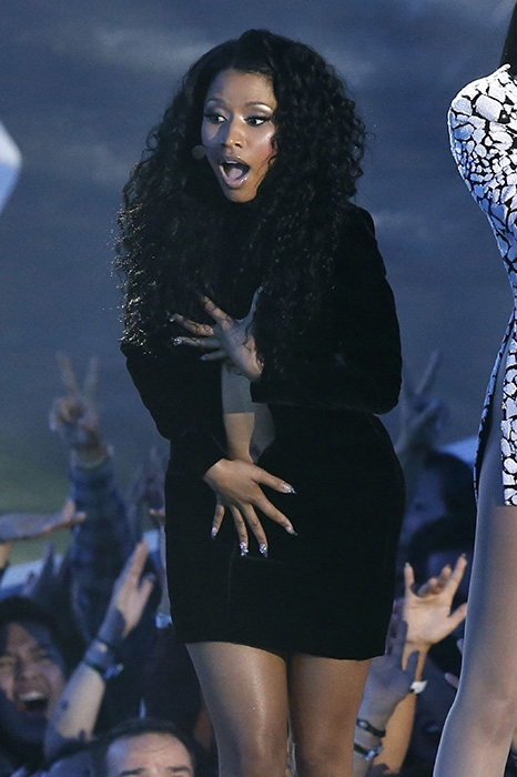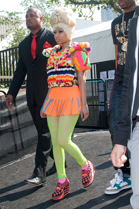 Кажется, одежда, заменяющая нижнее белье, занимает половину гардероба рэп-дивы. Она носит кружевные комбинезоны на голое тело, кроп-топы, обнажающее все, прозрачные боди и цветные пуш-ап бюстгальтеры вкупе с узкими брюками. Увидеть Ники в простой рубашке, boyfriend-джинсах и миди-юбке — нонсенс.