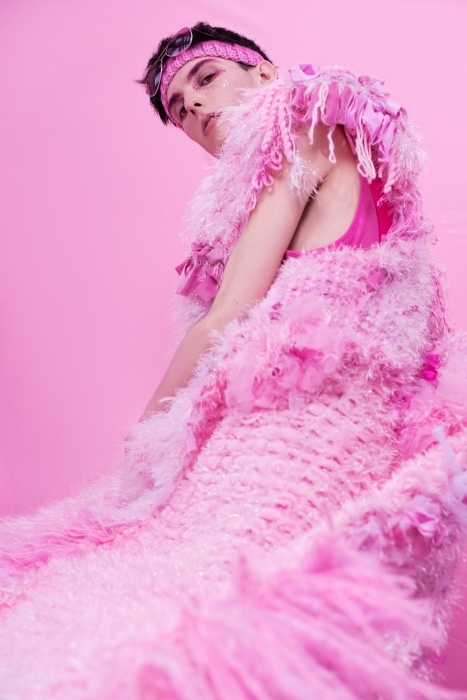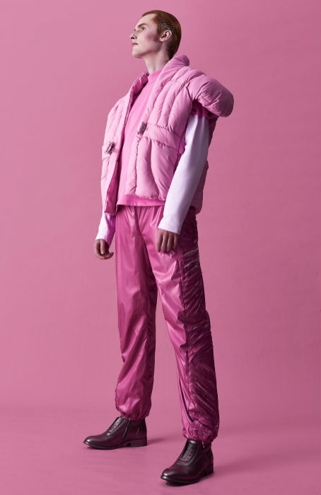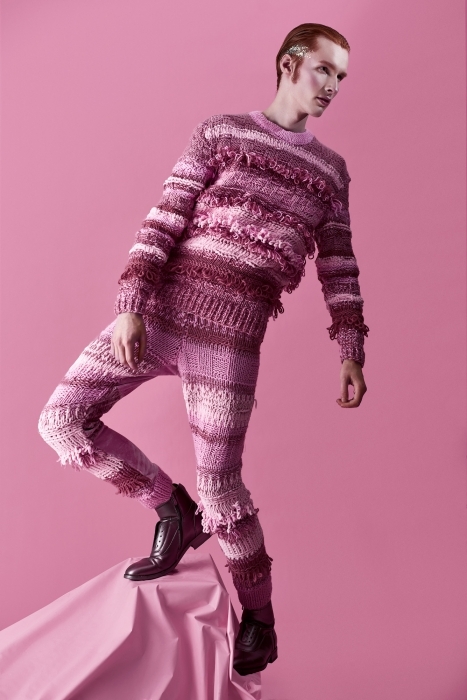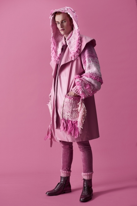 Выпускница СПбГУПТД Ольга Матюхина доказала — в университете ограничений в творчестве нет. Свою дипломную тотал-пинк коллекцию она посвятила мужчинам, доведя розовый до абсурда (и ряби в глазах!). «Этот цвет создан для девчонок, что делает его идеальным инструментом для выражения несправедливости стереотипных гендерных ролей», — объясняет Оля, — Я постаралась стереть грань между мужским и женским, но такую одежду решатся надеть только самые смелые».