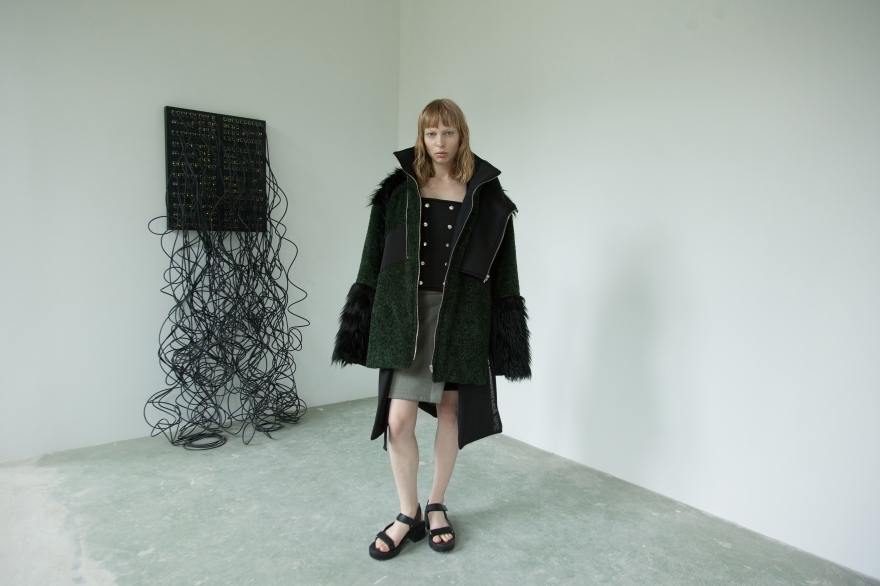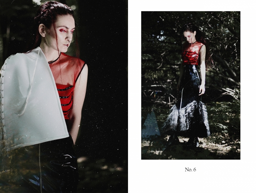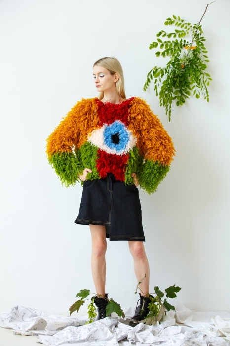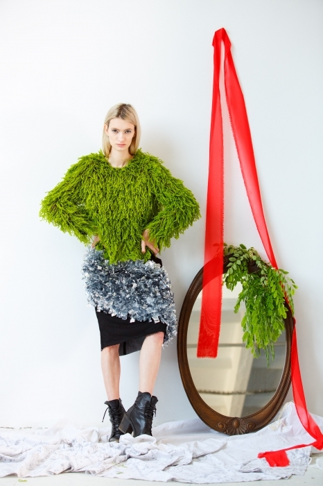 18-летний Влад Мартыненко — один из немногих юных дизайнеров, кто делает полноценные авторские луки. Пока конкуренты заимствуют обувь у Converse или просят моделей прийти в «своем», он создает классные кожаные ботфорты, которые дополняют его пальто-коконы, юбки из виниловой кожи, гранжевые накидки и топы как из хоррор-фильмов.