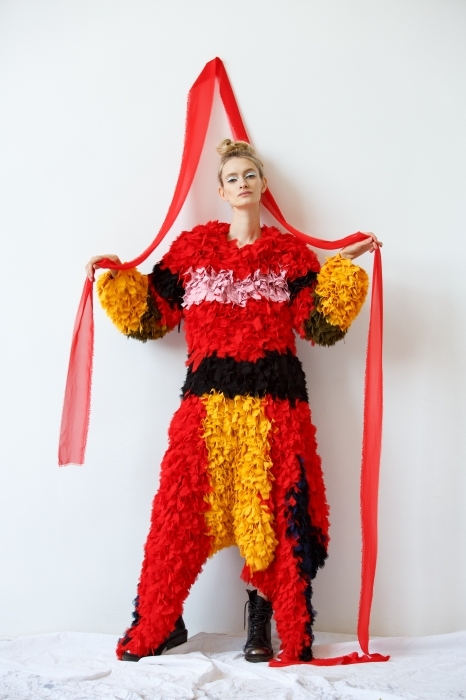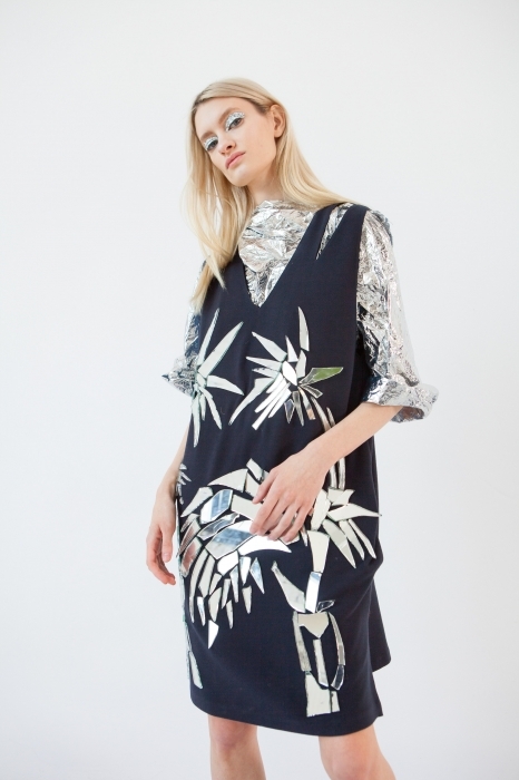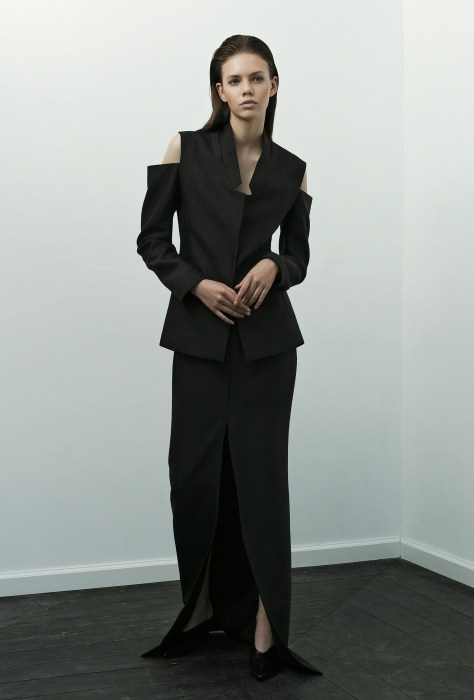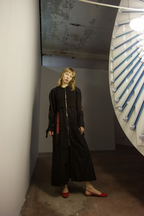Бренд с «ошибочным» названием 404 NOT FOUND мы открыли для себя задолго до его участия в конкурсе. Дизайнер, который как Мартин Маржела скрывает свою личность и предпочитает оставаться за кулисами творчества, окончила французский институт моды Mod Art International (представительство в Петербурге) и ориентируется на стилистику Helmut Lang и Saint Laurent. А в новой коллекции добавила в мудборд кадры из фильма «Москва слезам не верит» — такая Катя Тихомирова (в кожаном платье, деконструированном пиджаке и шубе из красного меха) нам нравится!